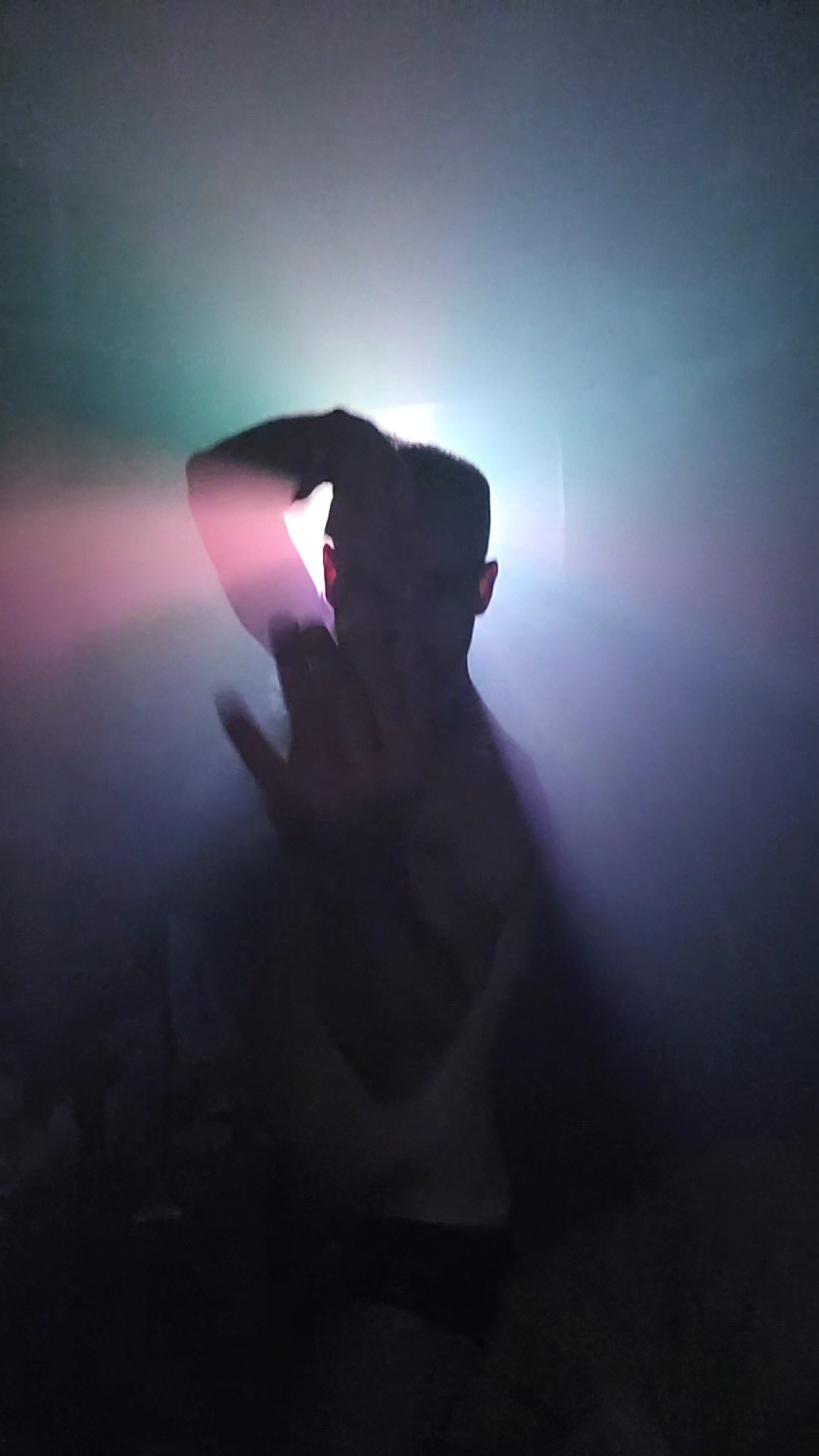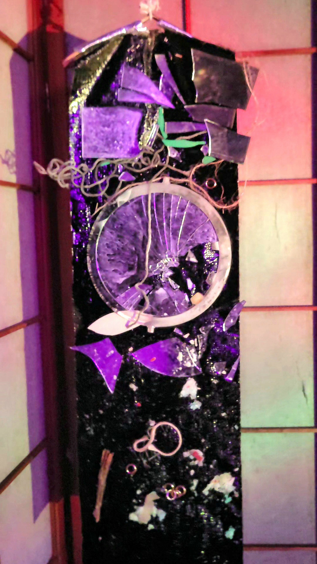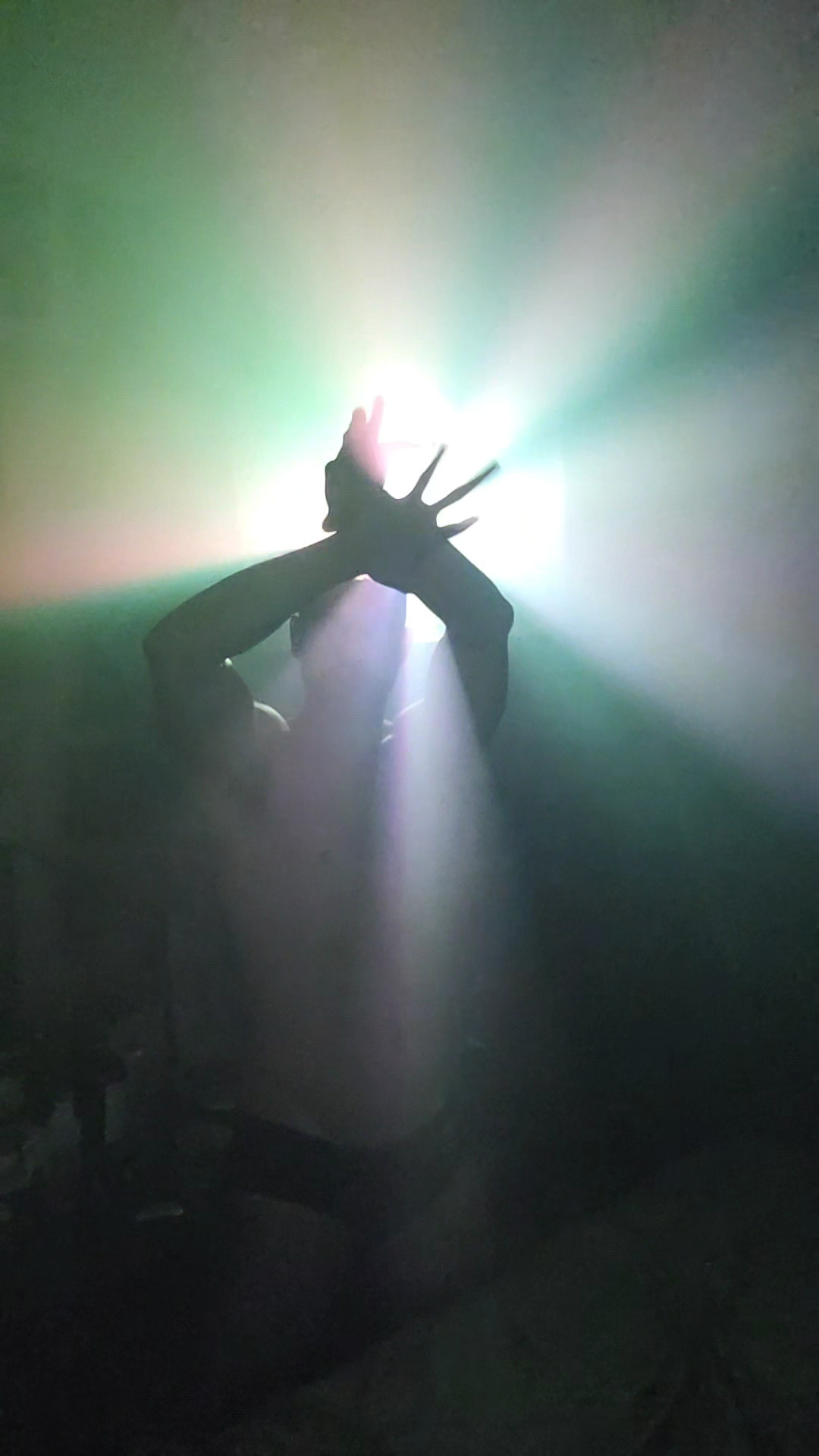 In the theater you build — the screen, LED lights, incense in the arms of Prometheus — each fragment of the world returns to the scene as a character. They are remnants of a technical civilization that, when rearranged, return to being sacred. The aluminum that glues the broken mirror is a residue of modernity but acts as an oracle. The smoke machine, designed for parties, becomes a cloud of invocation. And the colored lights… are reprogrammed rainbows.