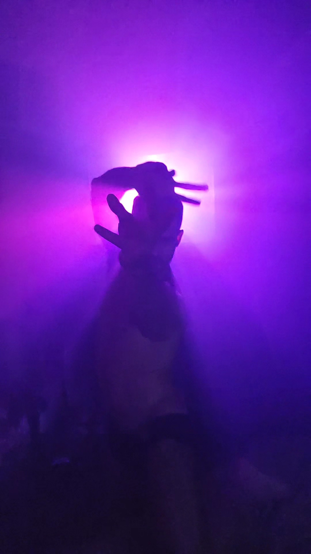 A máquina de fumaça exalou seu alento.