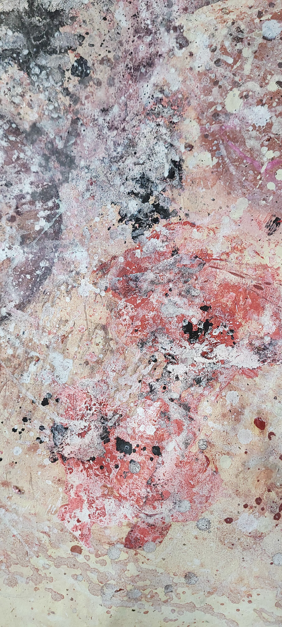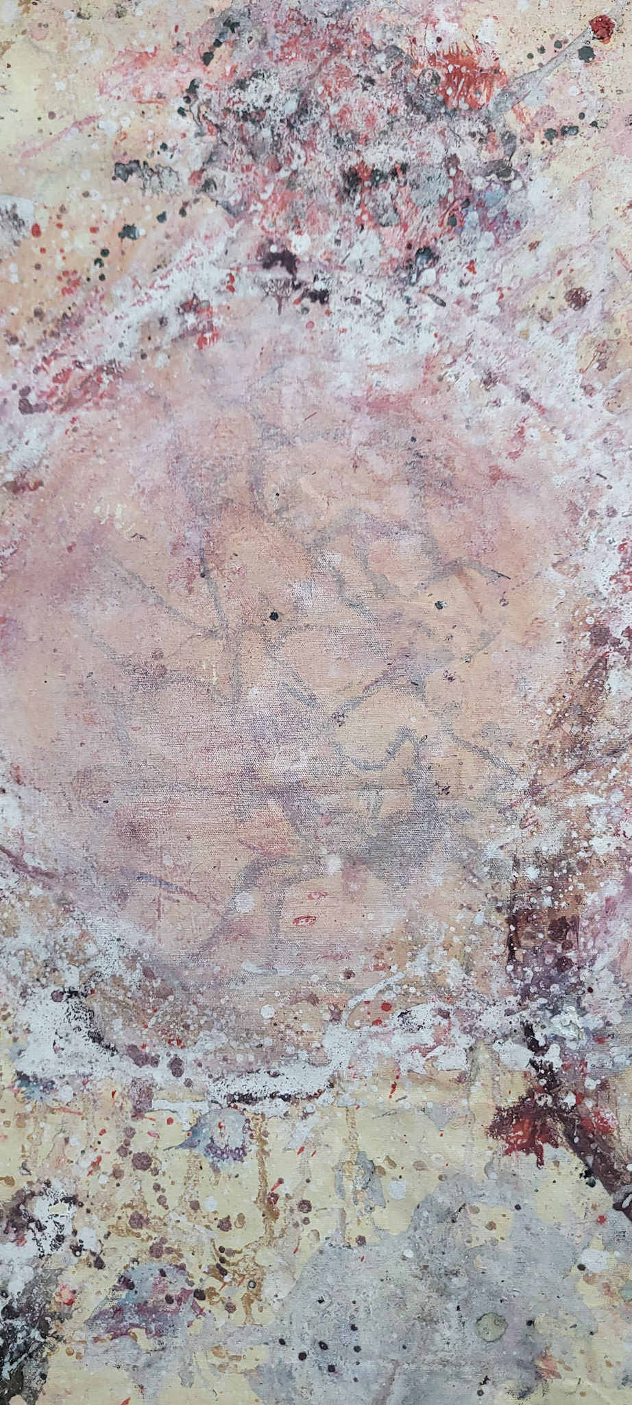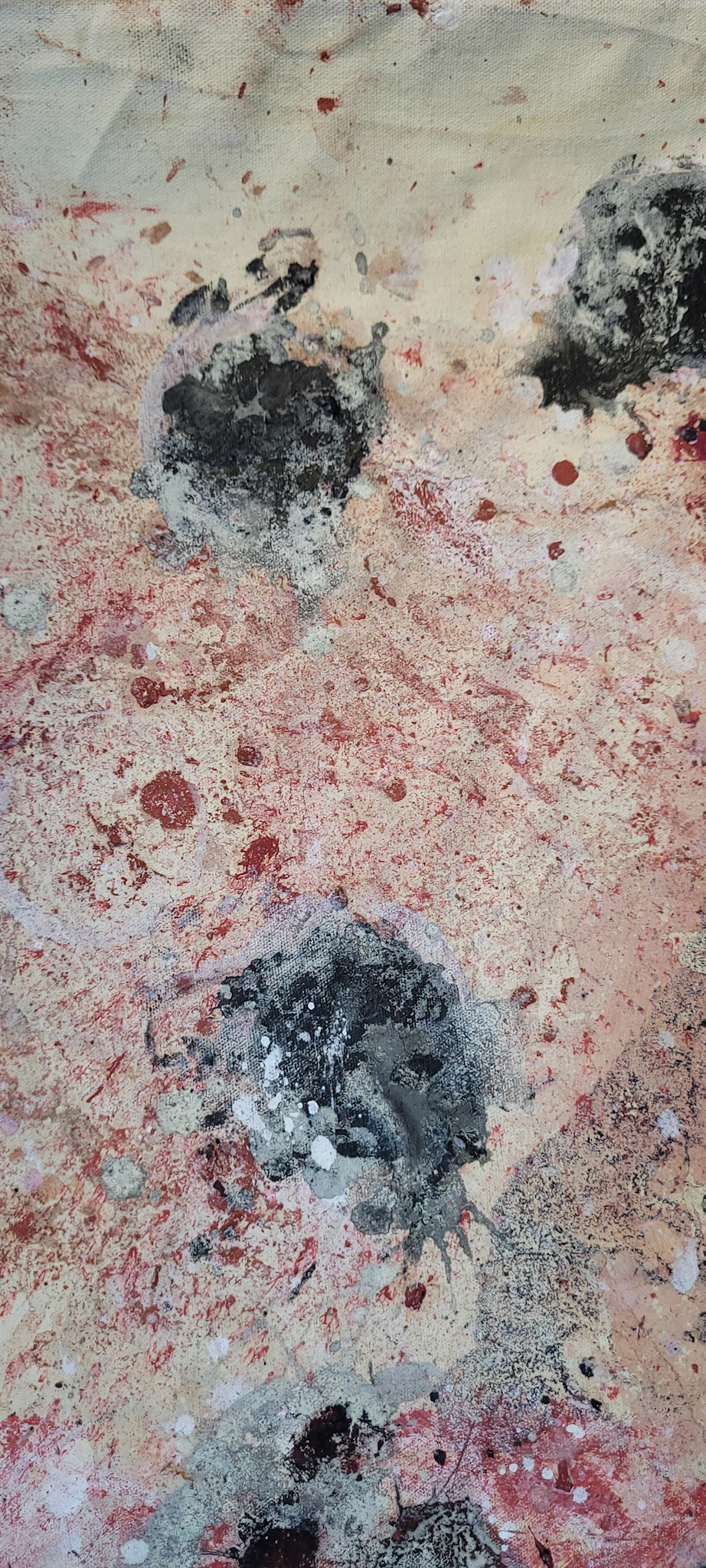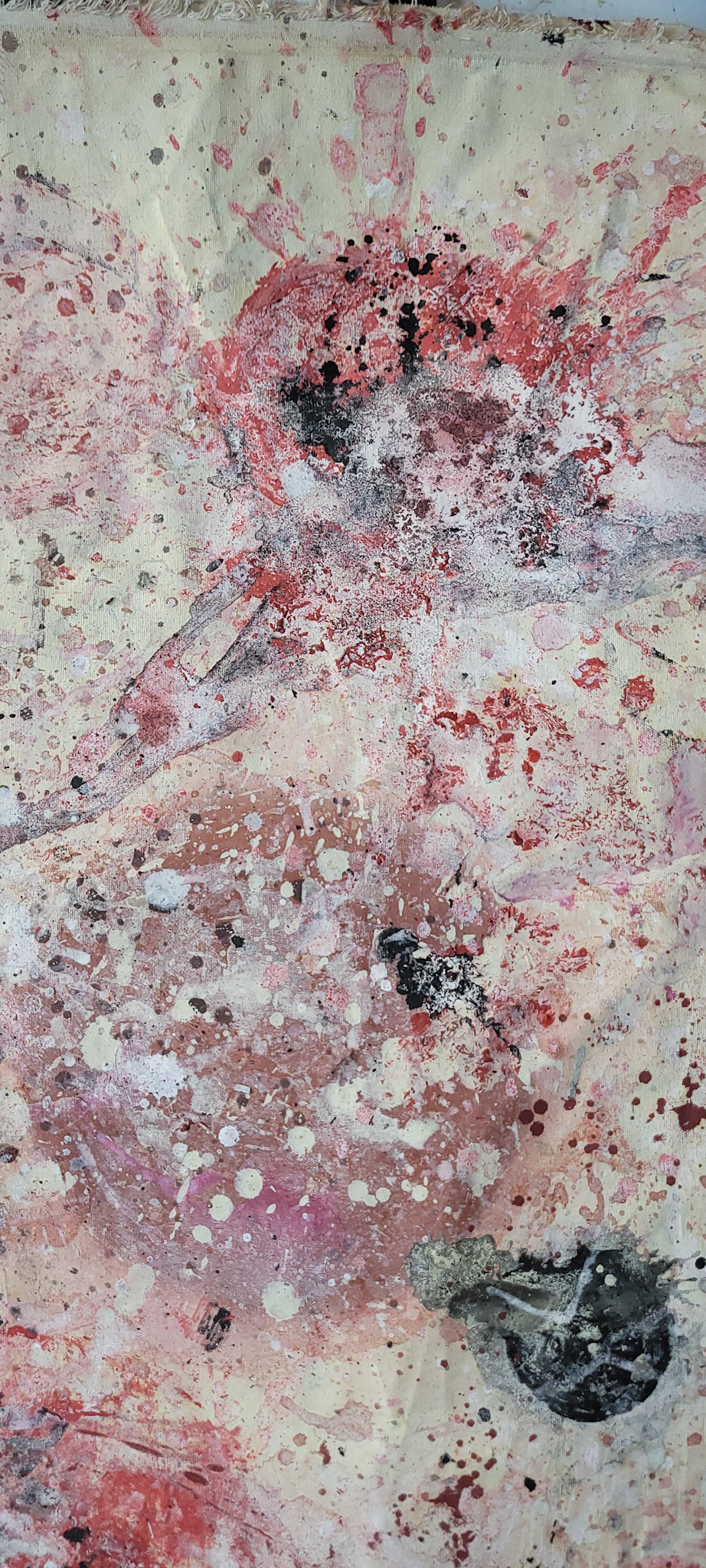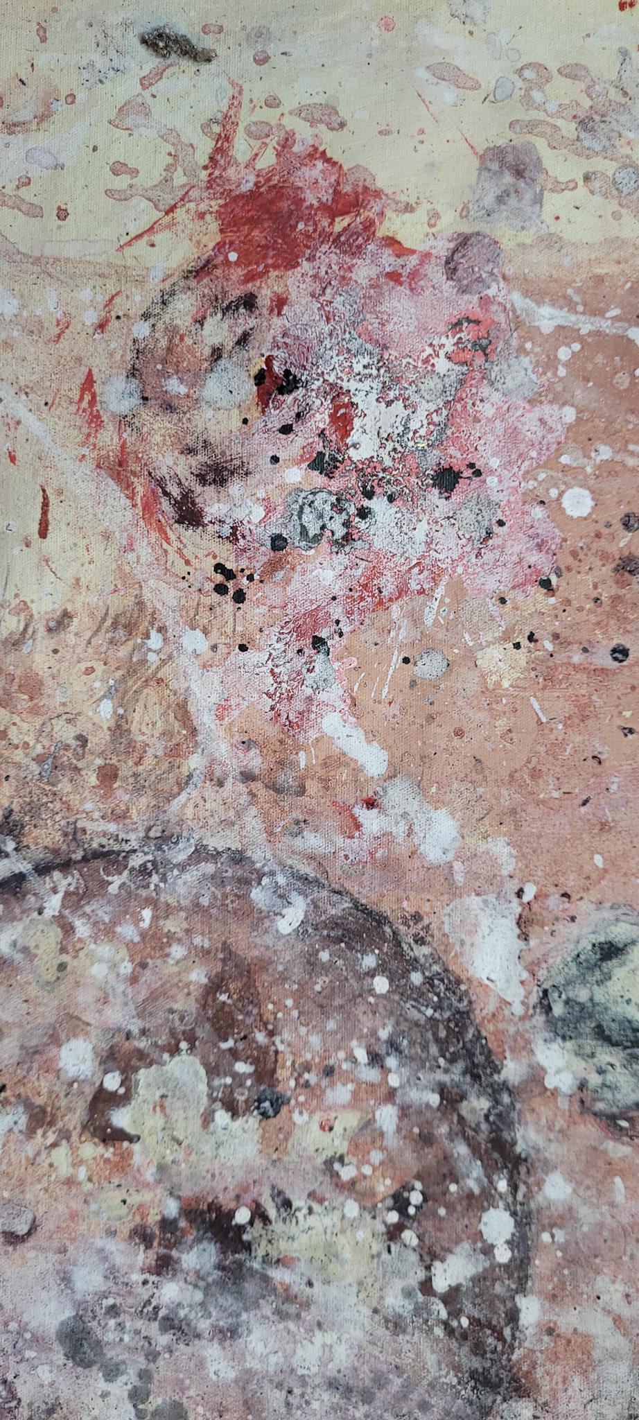 Aqui, onde o chão é mais que suporte — é ventre, húmus, carne da própria matéria pictórica — nascem gestos que não querem secar.