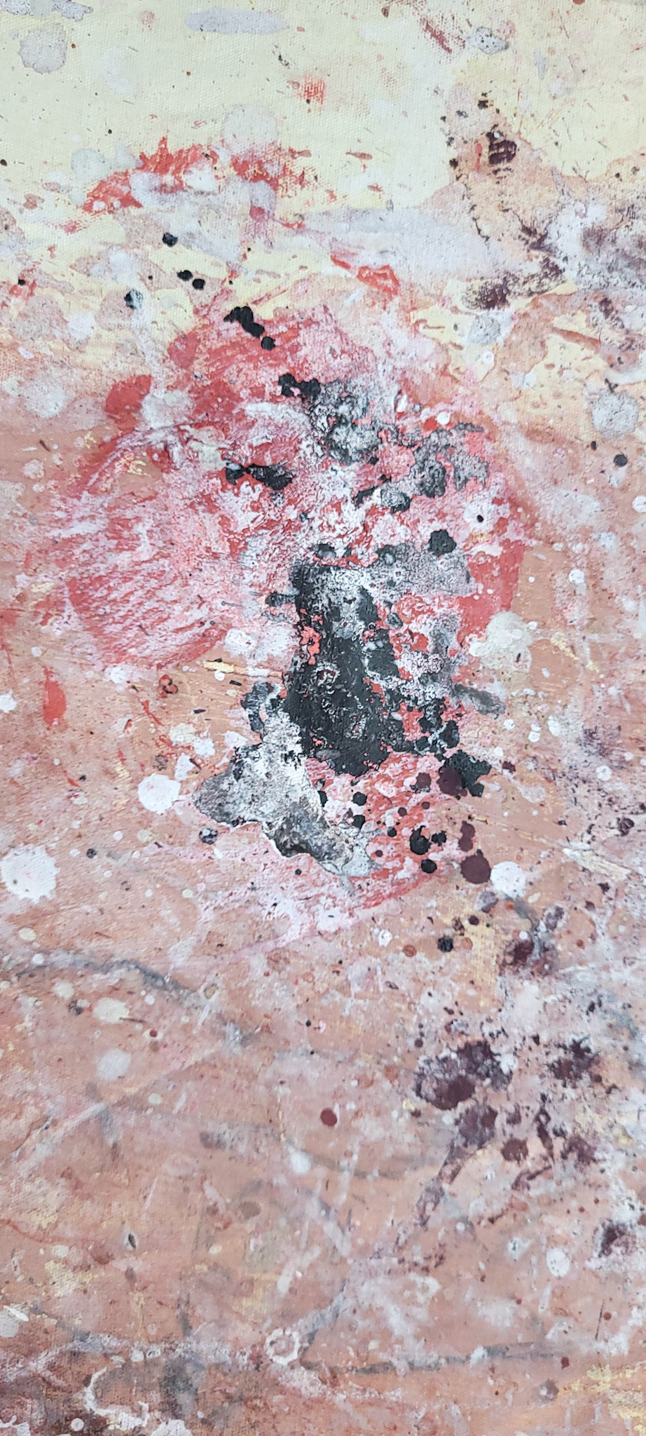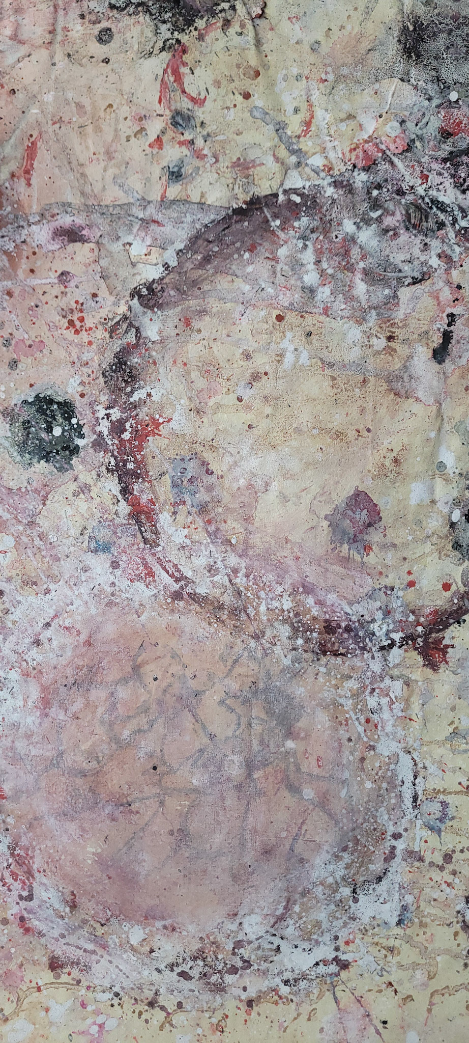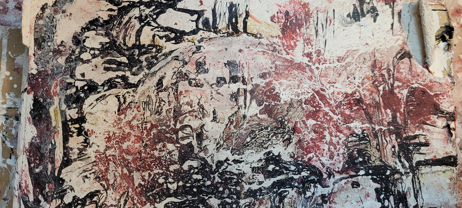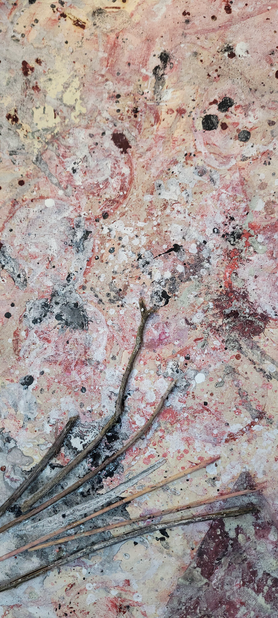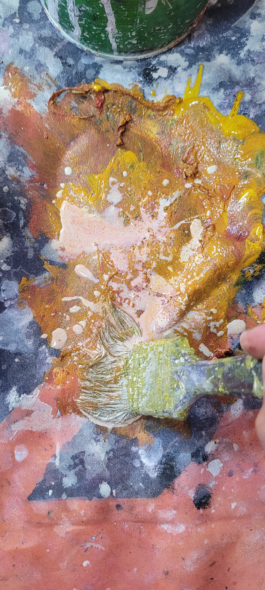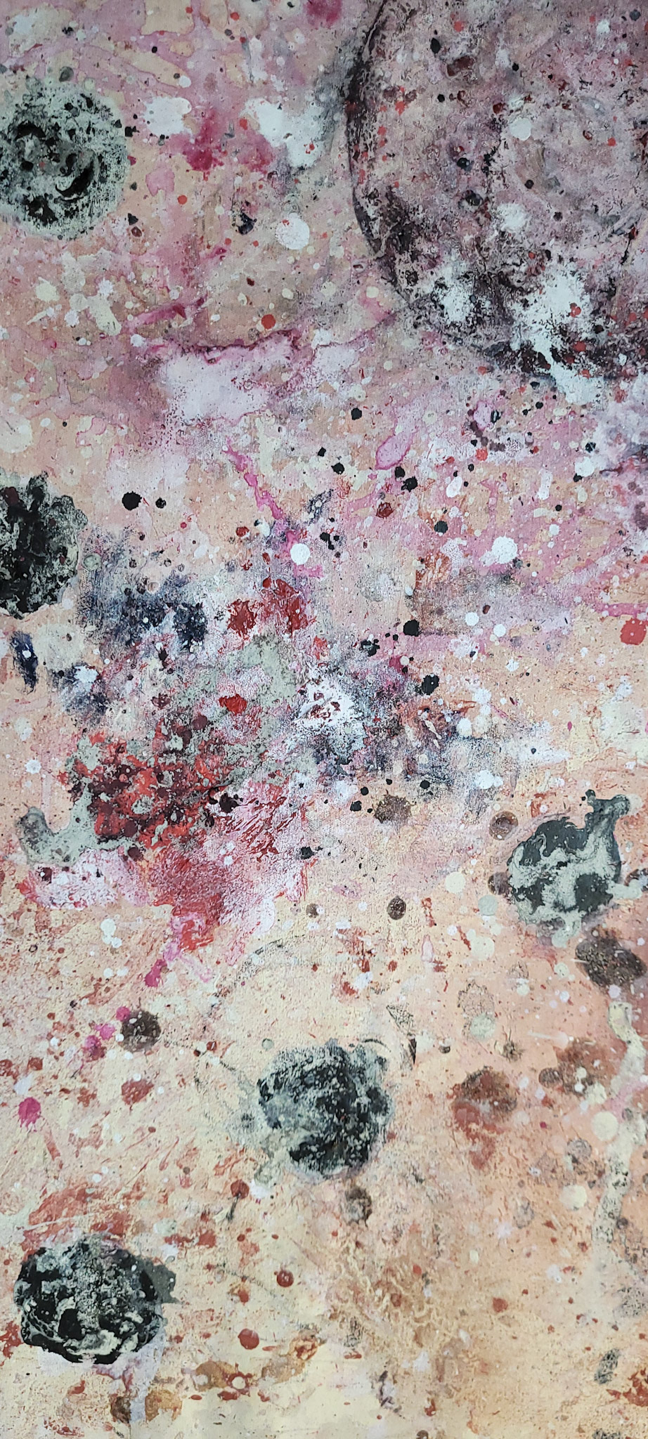 Aqui, onde o chão é mais que suporte — é ventre, húmus, carne da própria matéria pictórica — nascem gestos que não querem secar.