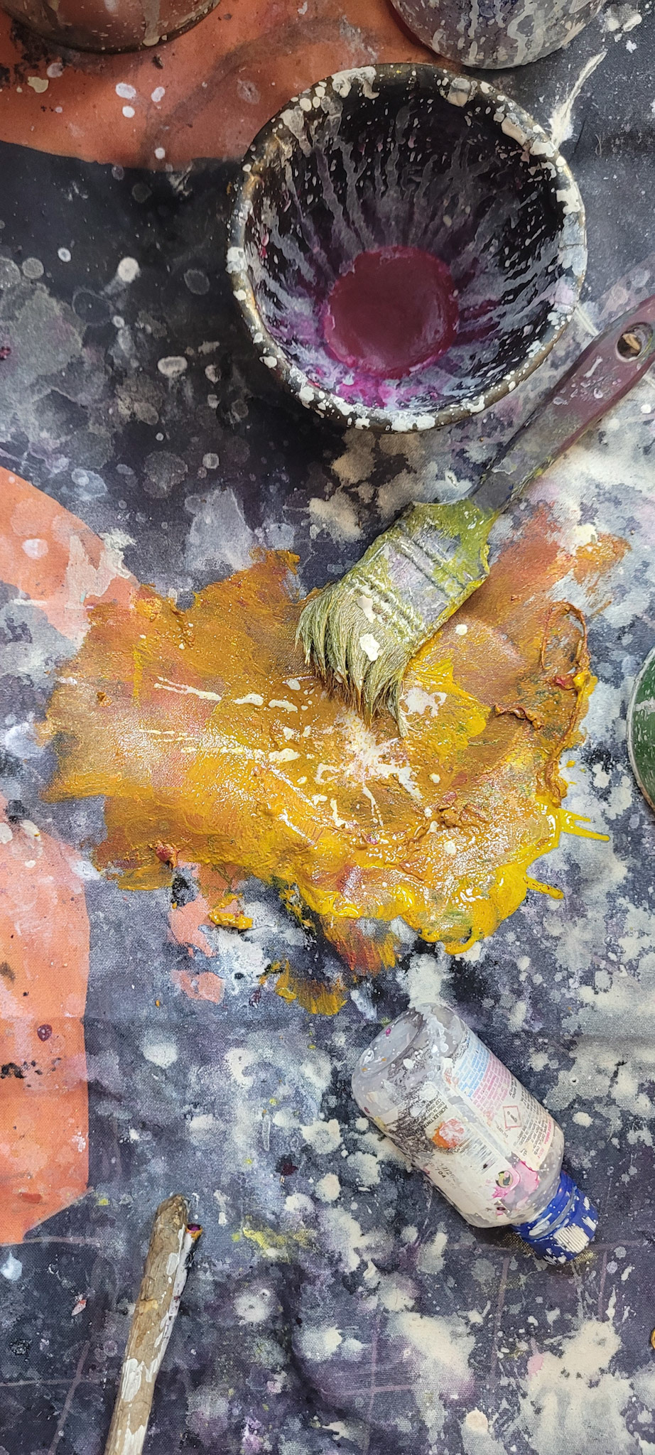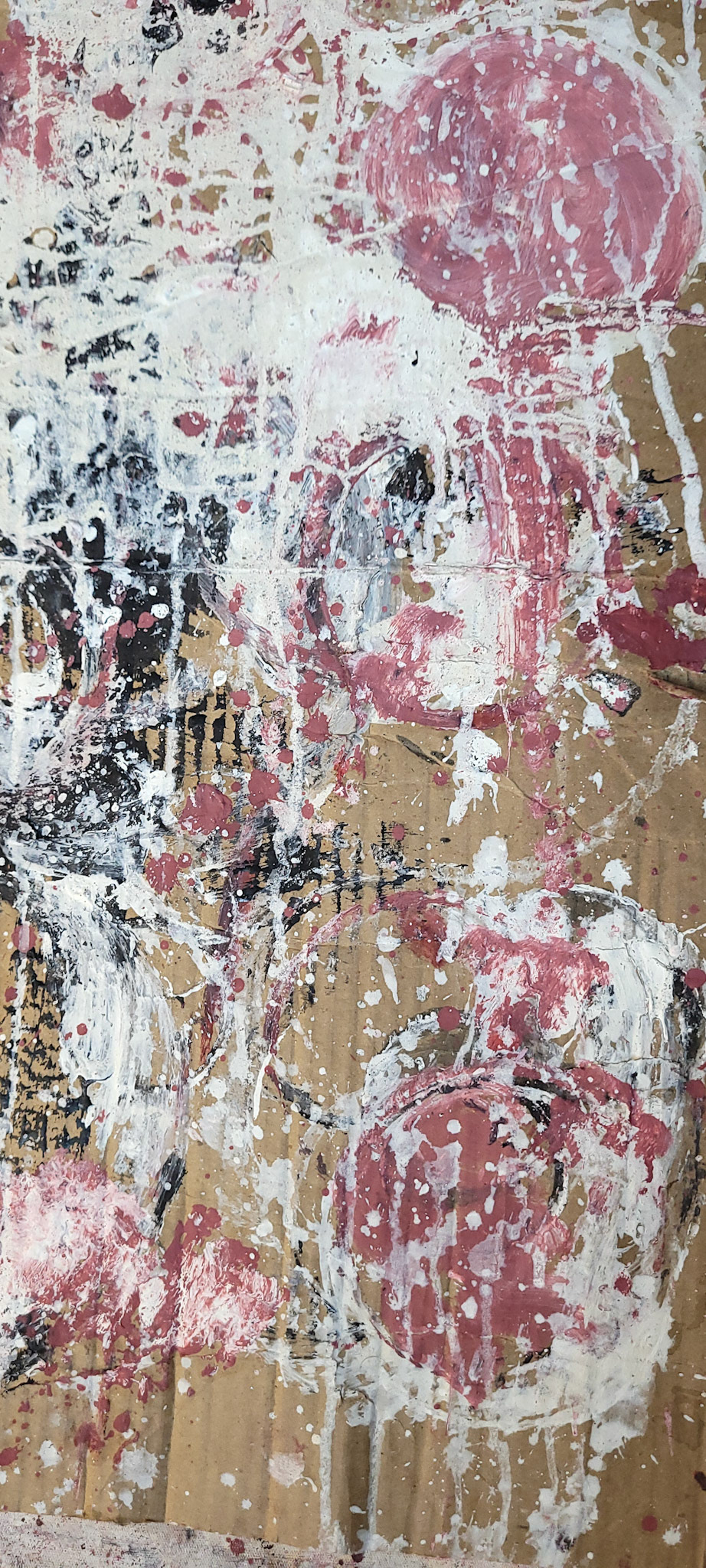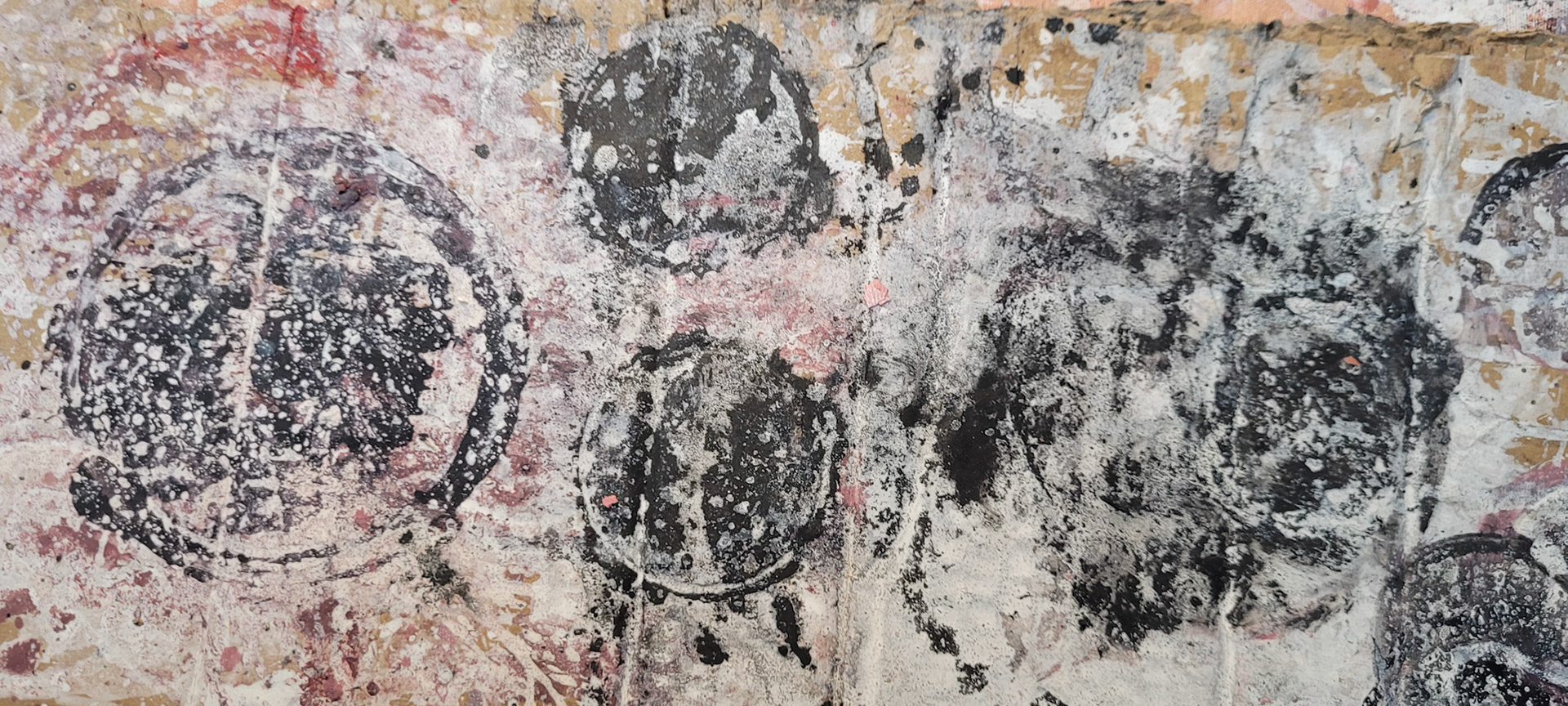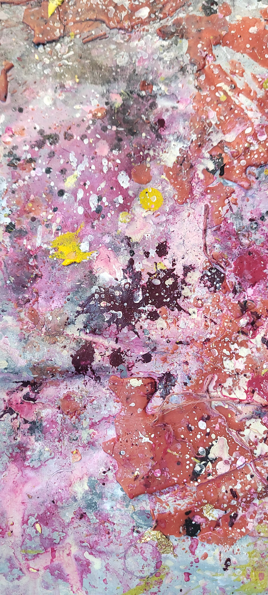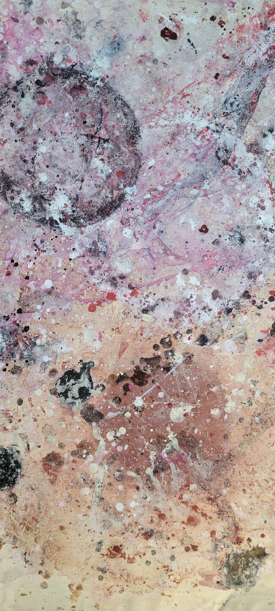 Aqui, onde o chão é mais que suporte — é ventre, húmus, carne da própria matéria pictórica — nascem gestos que não querem secar.