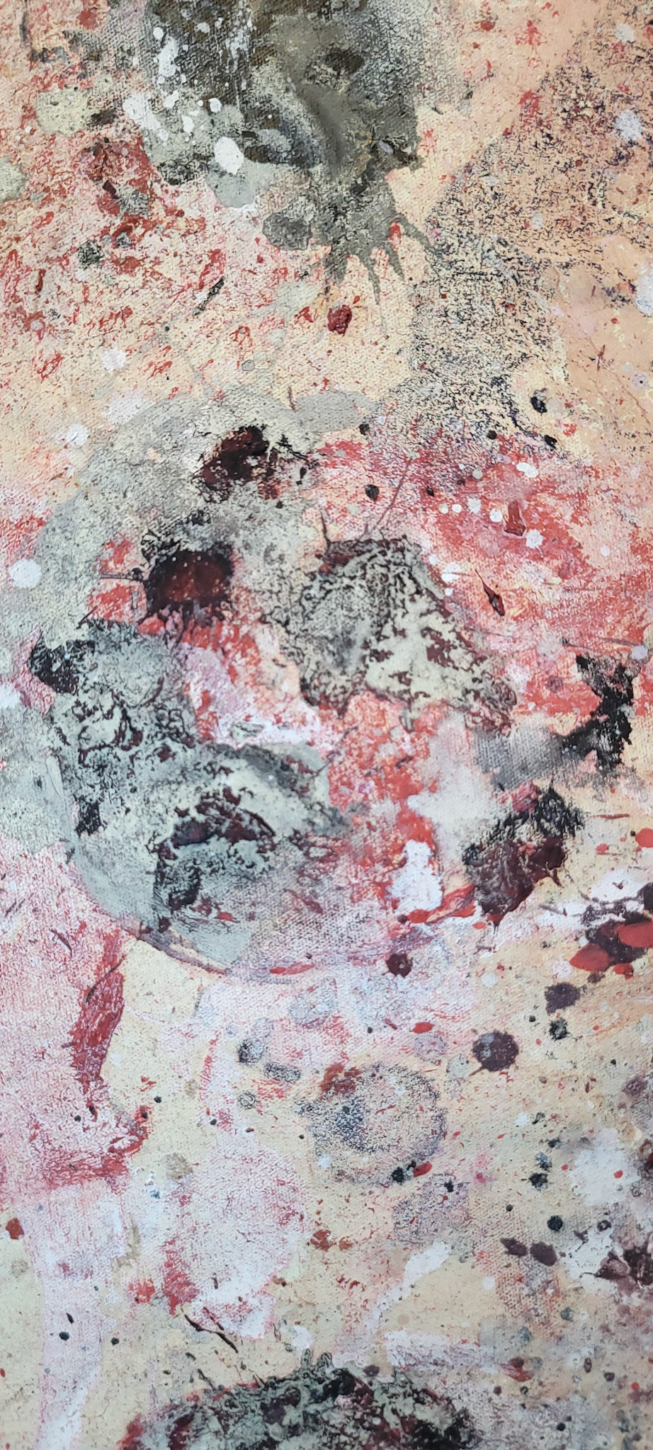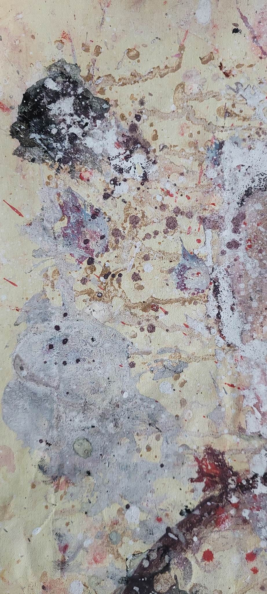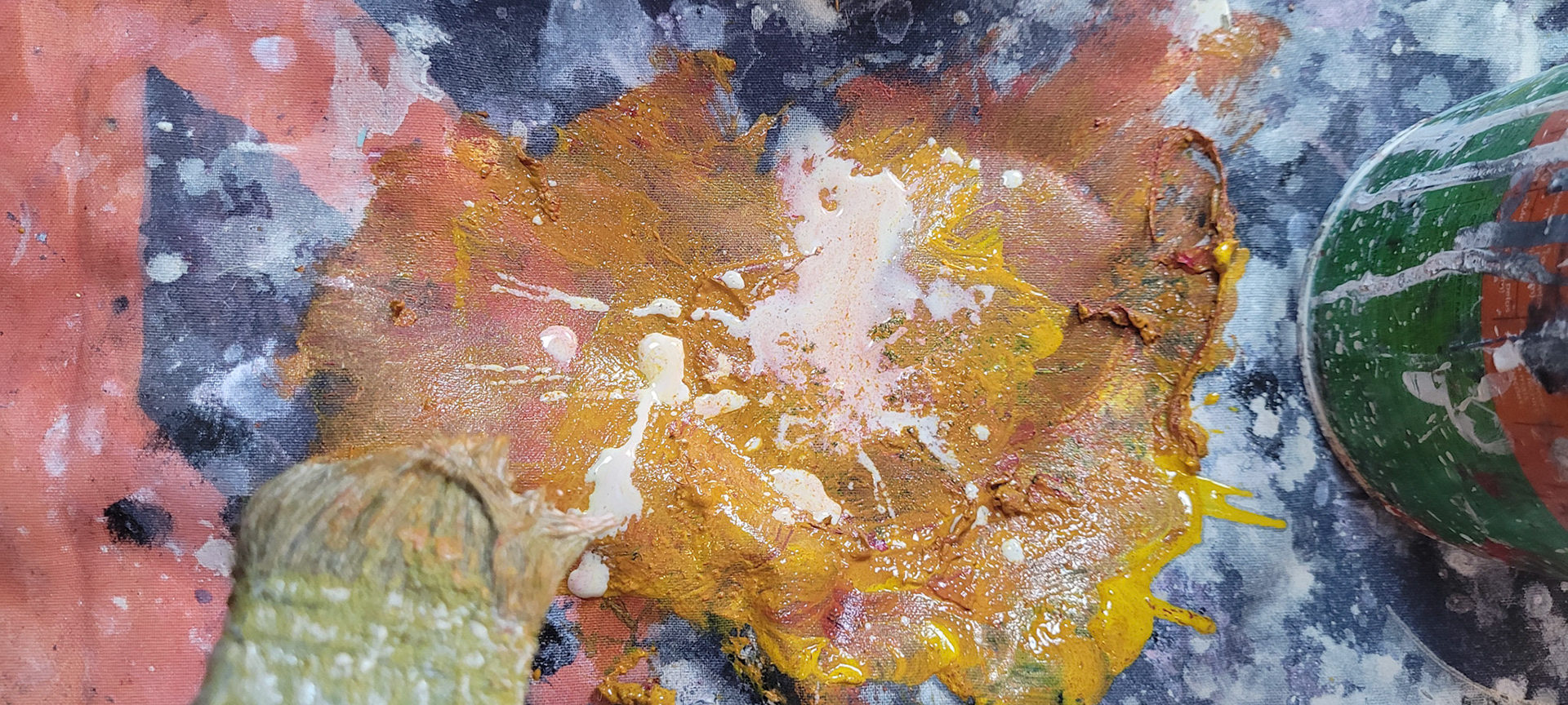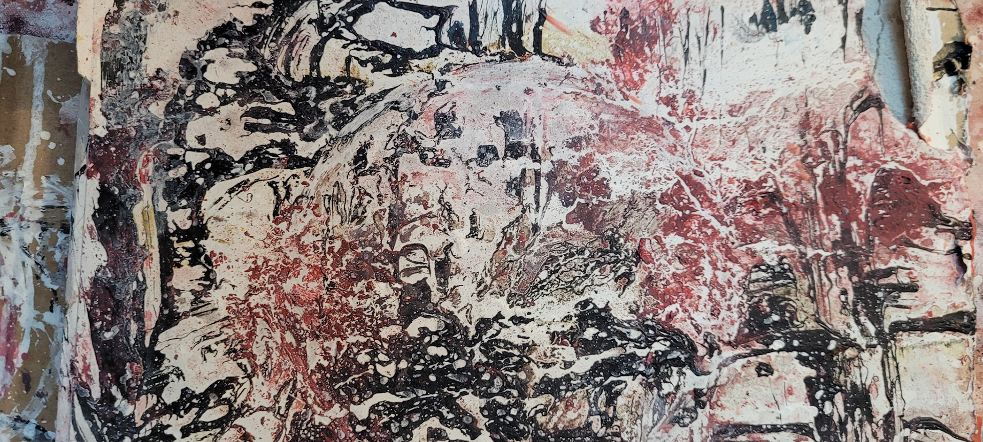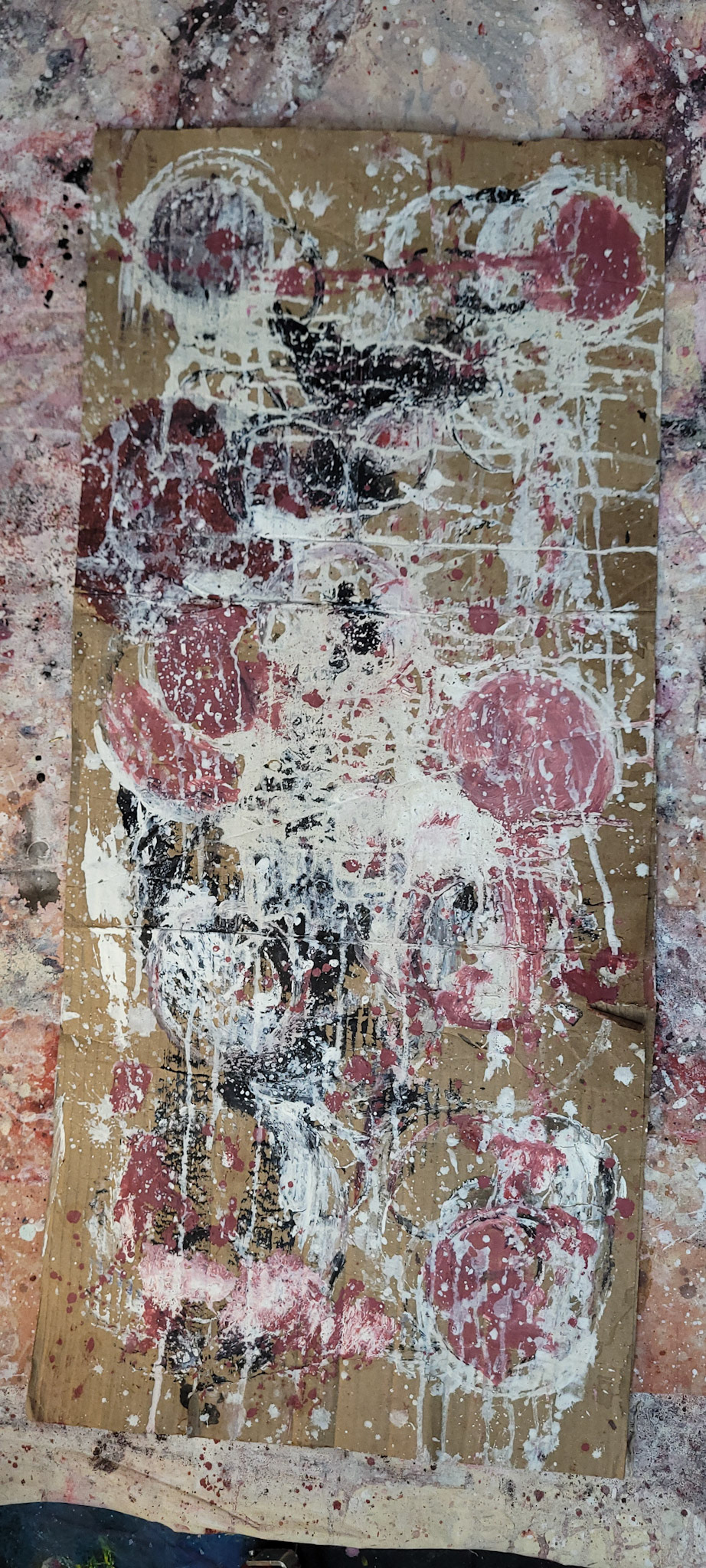 Aqui, onde o chão é mais que suporte — é ventre, húmus, carne da própria matéria pictórica — nascem gestos que não querem secar.