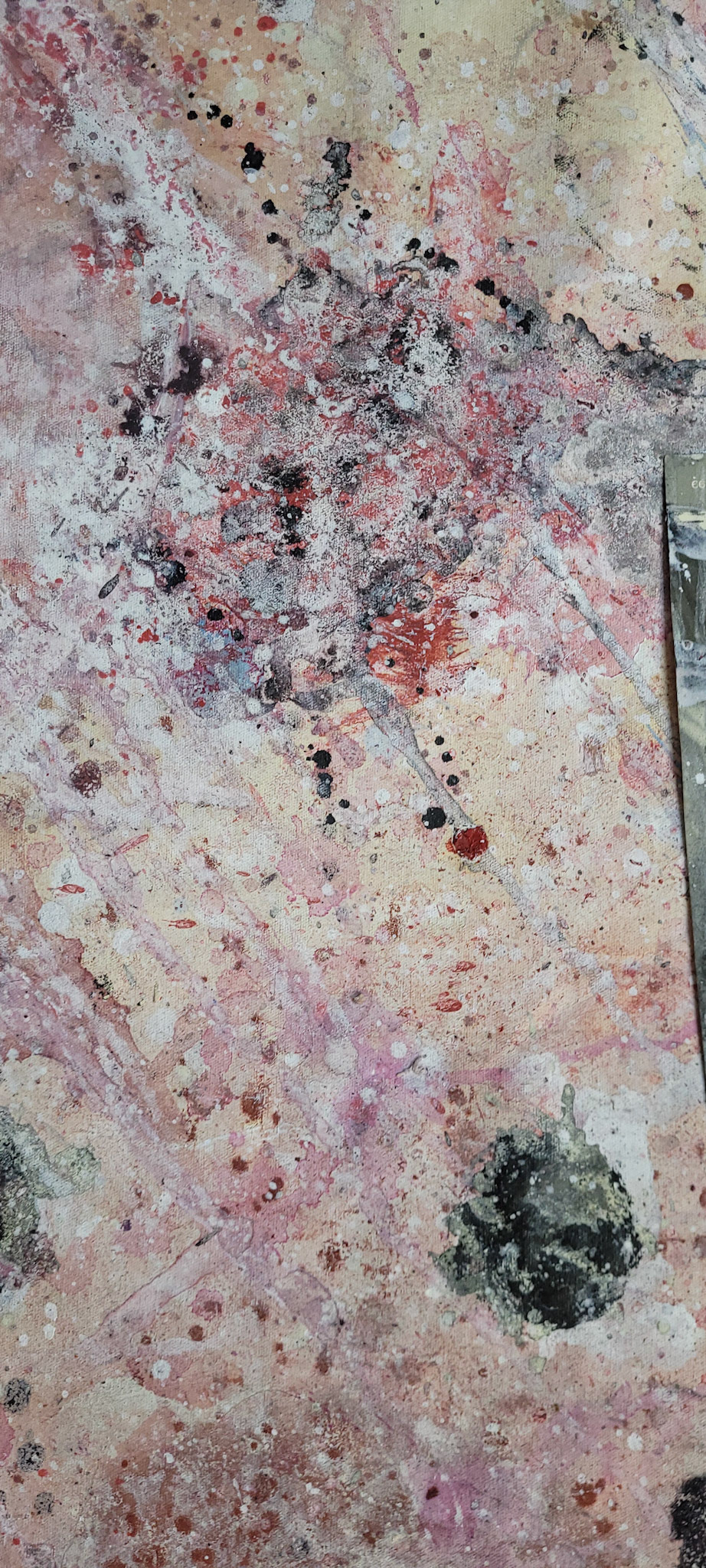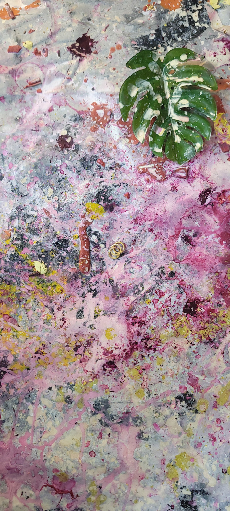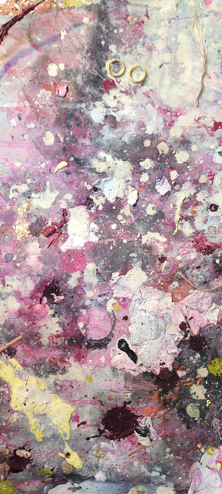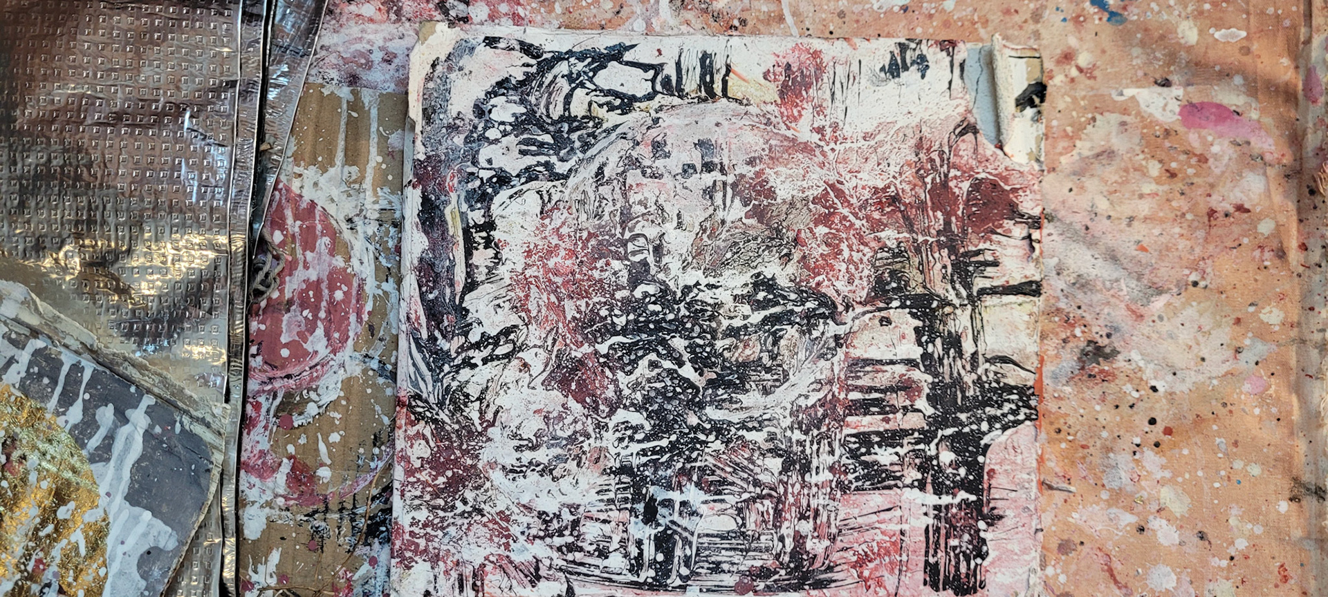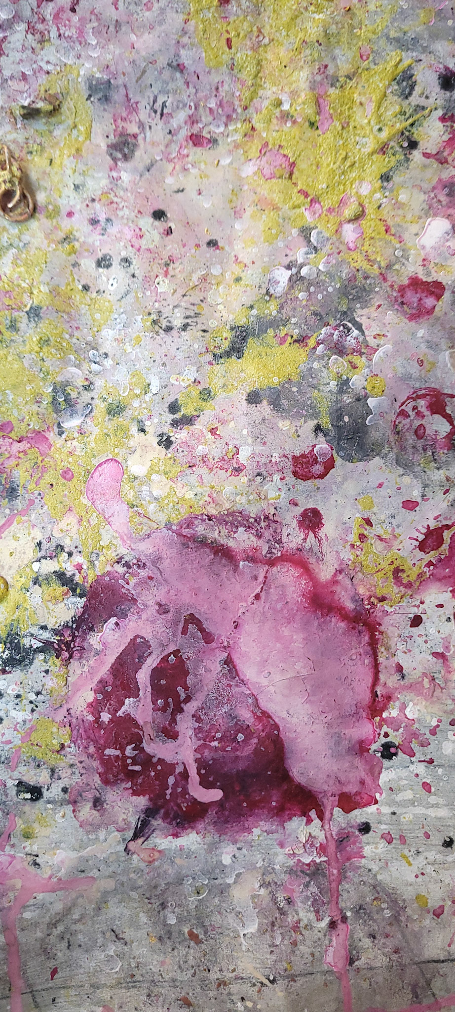 Aqui, onde o chão é mais que suporte — é ventre, húmus, carne da própria matéria pictórica — nascem gestos que não querem secar.