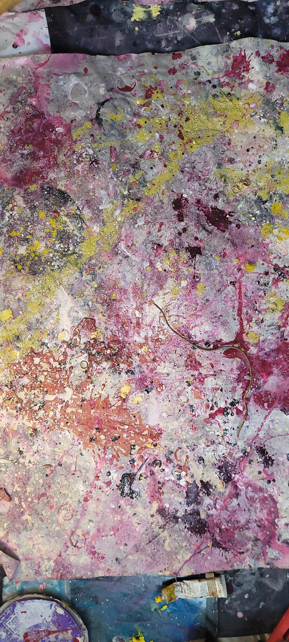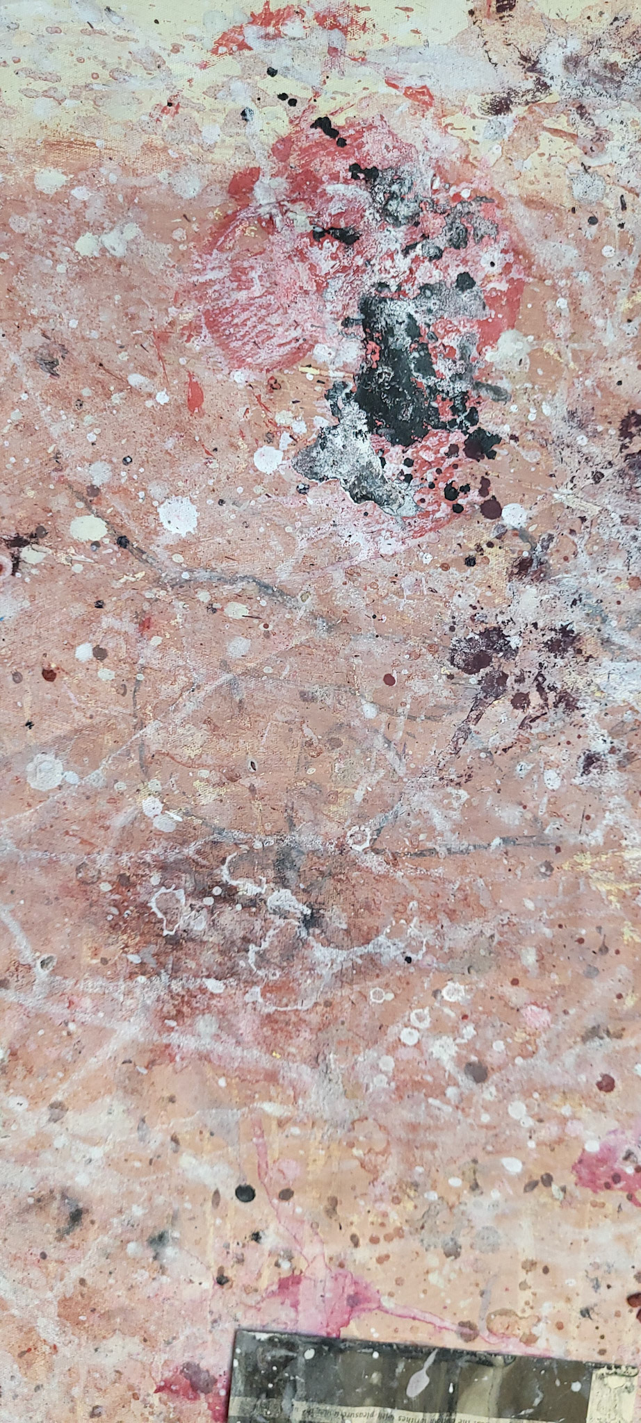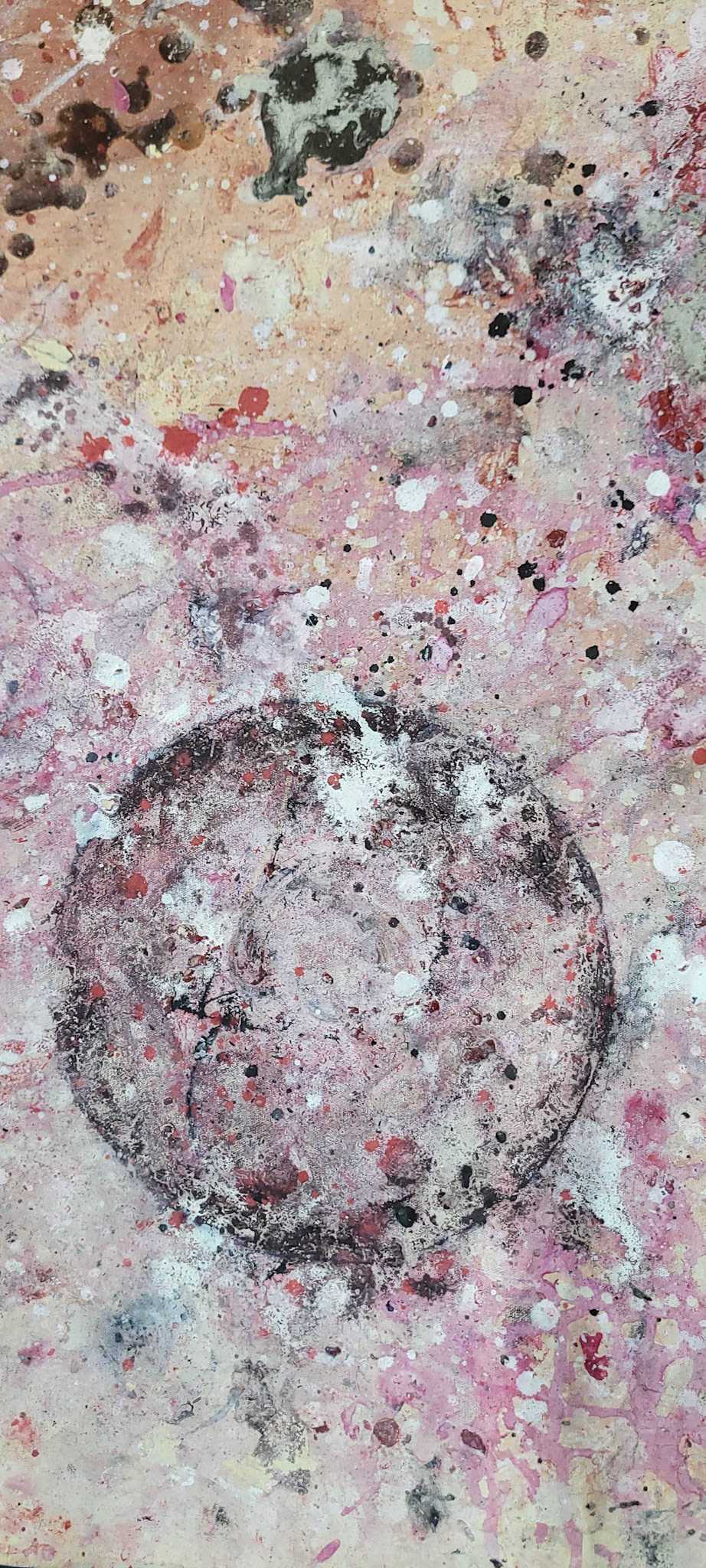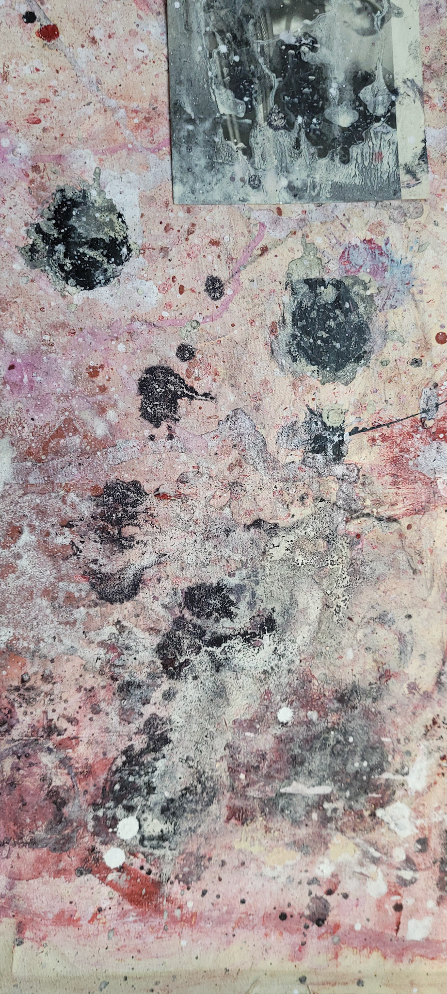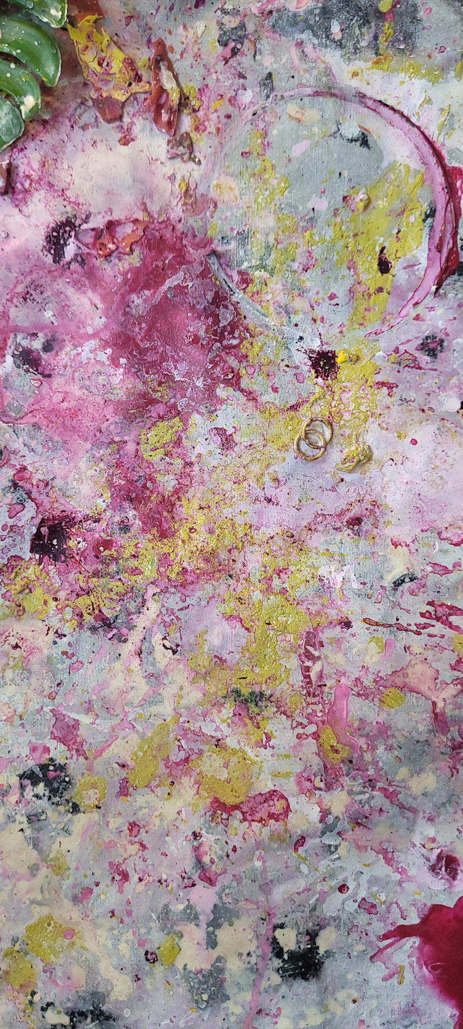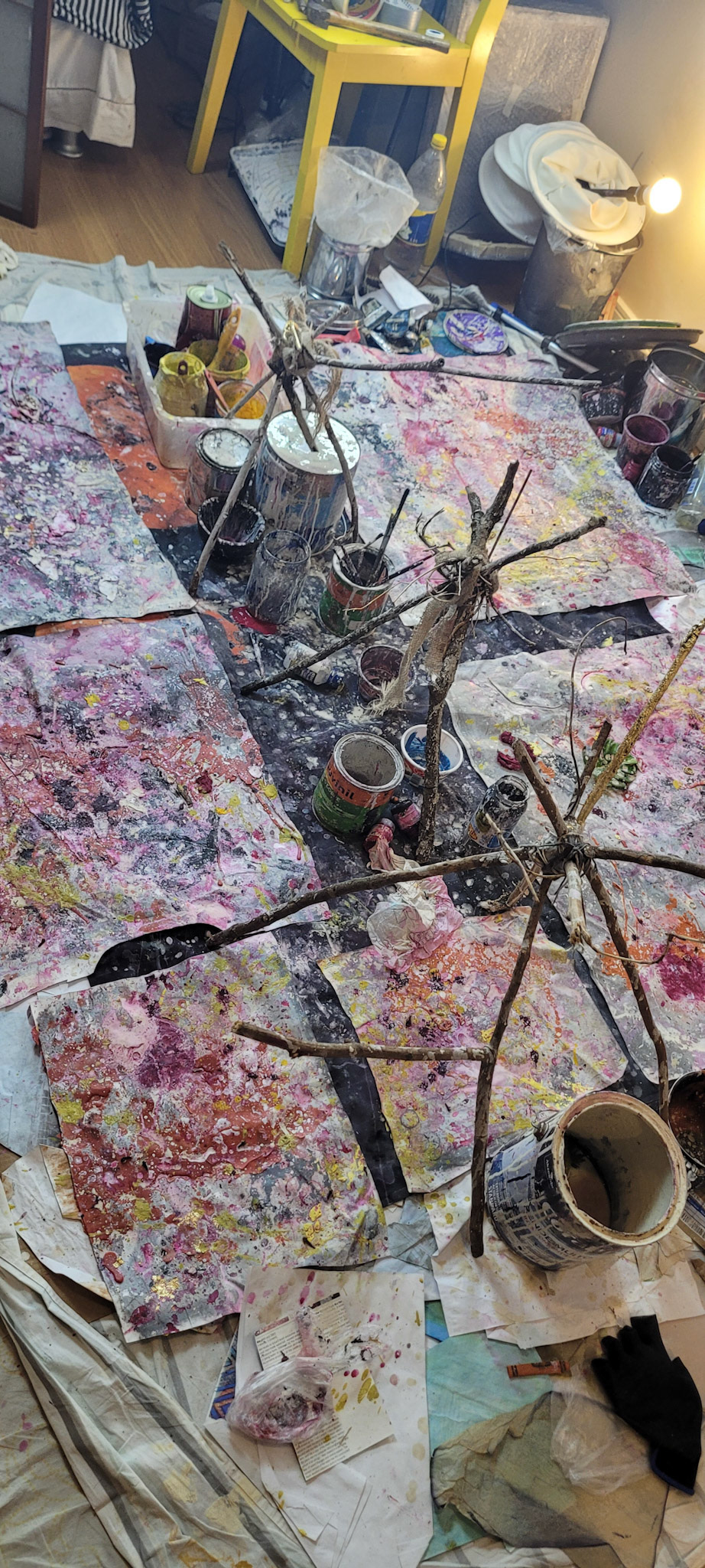 Aqui, onde o chão é mais que suporte — é ventre, húmus, carne da própria matéria pictórica — nascem gestos que não querem secar.