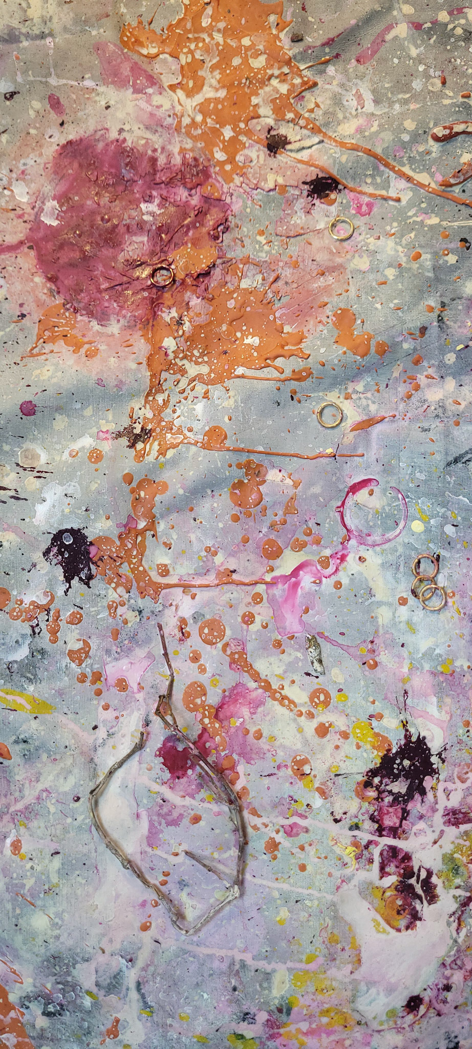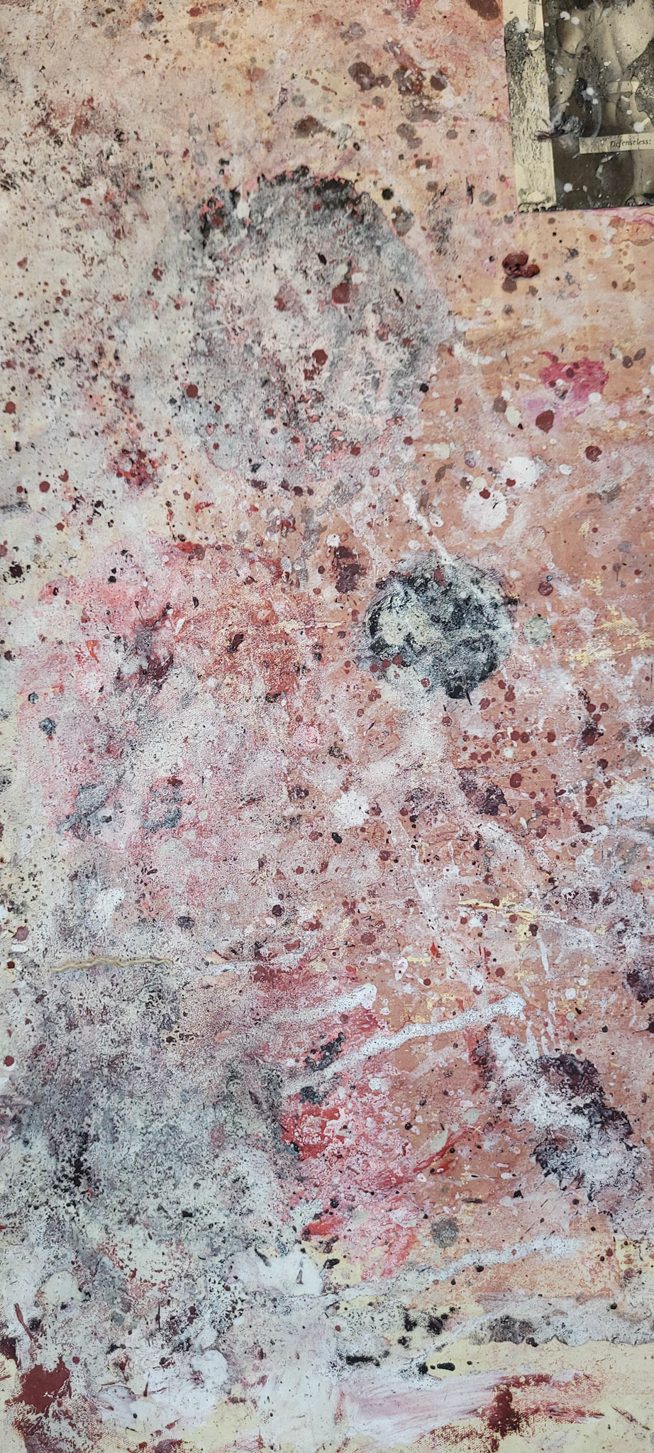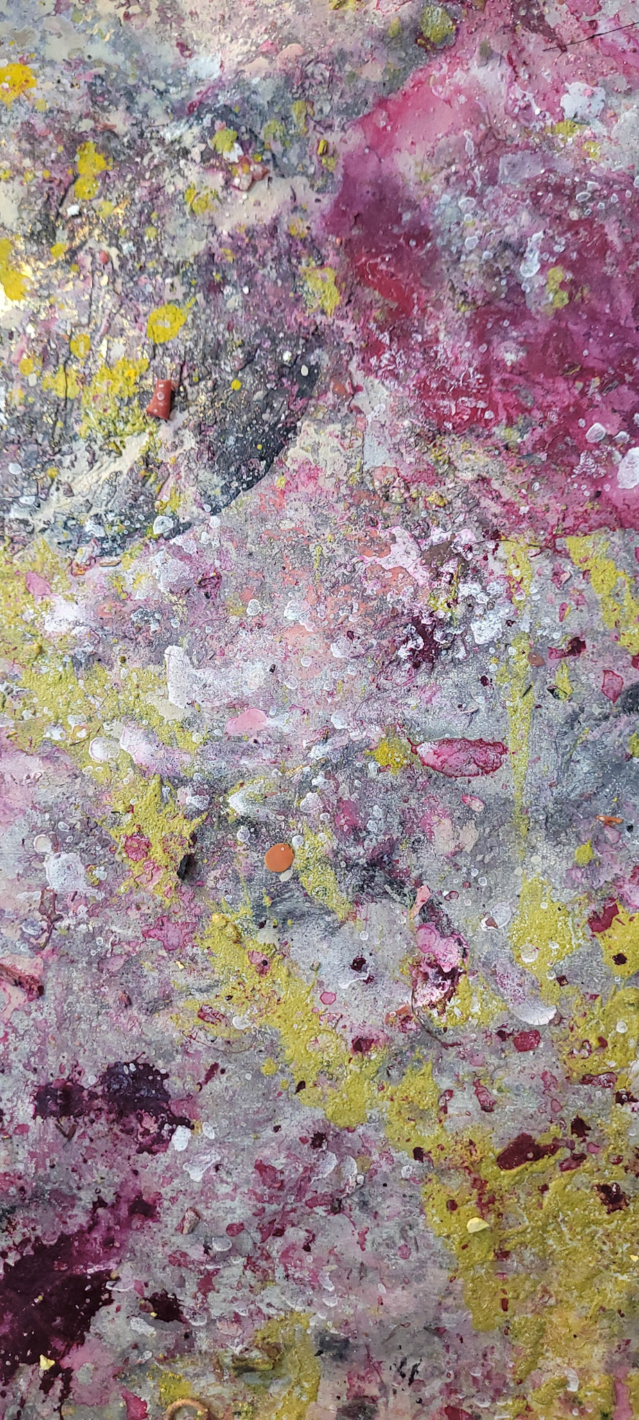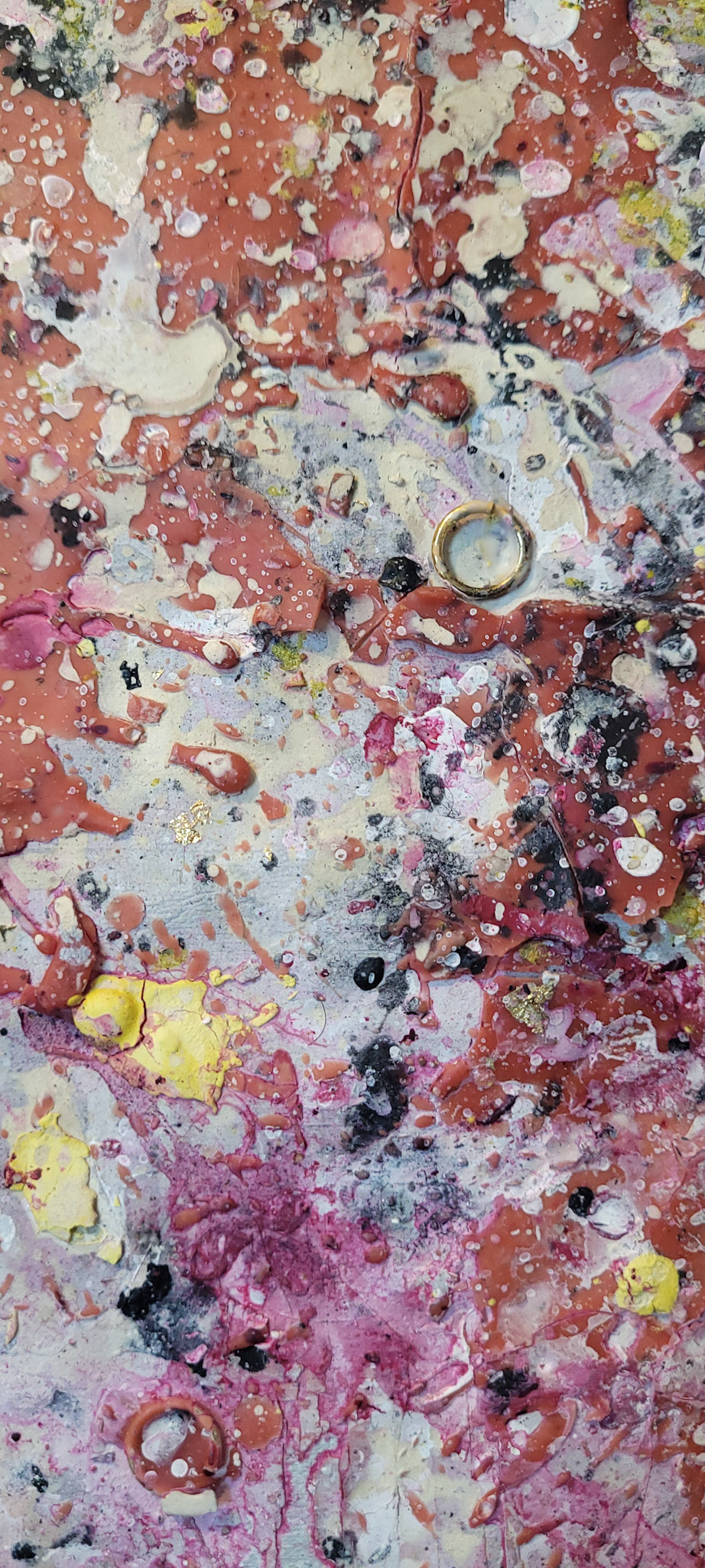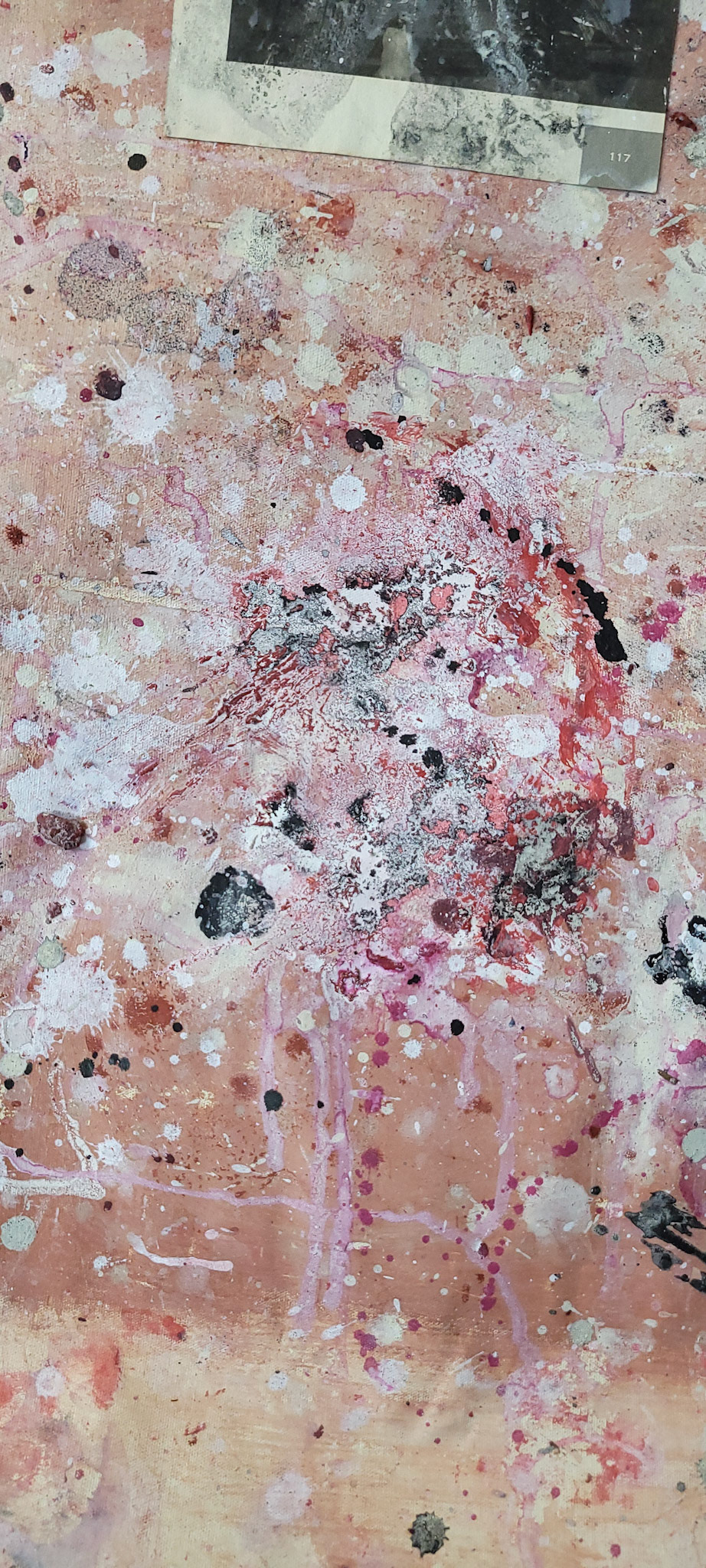 Aqui, onde o chão é mais que suporte — é ventre, húmus, carne da própria matéria pictórica — nascem gestos que não querem secar.
