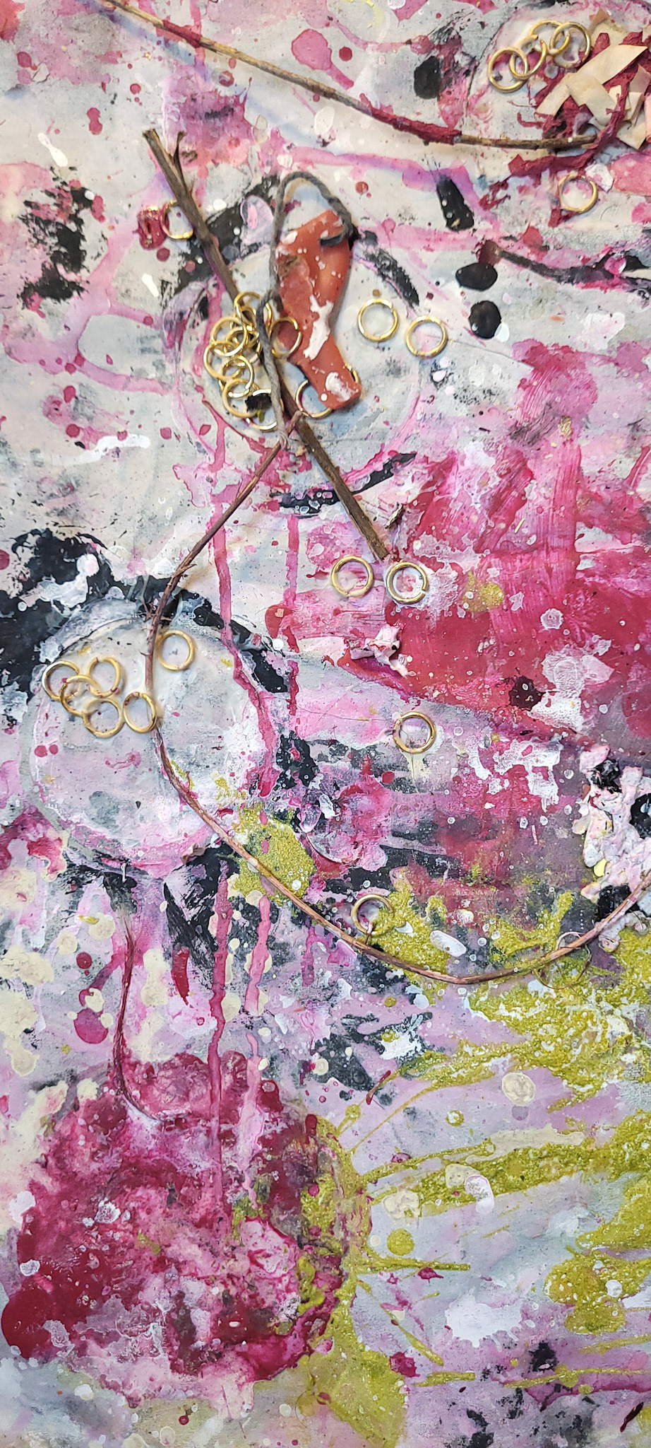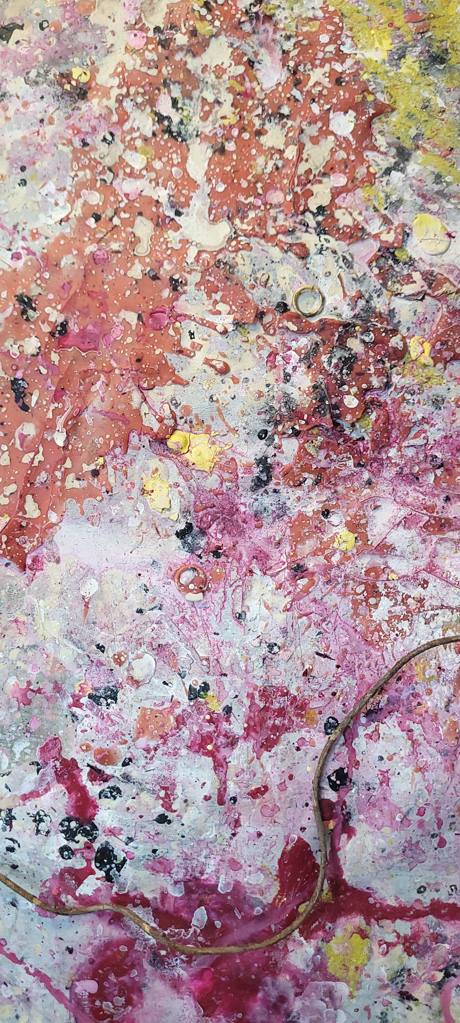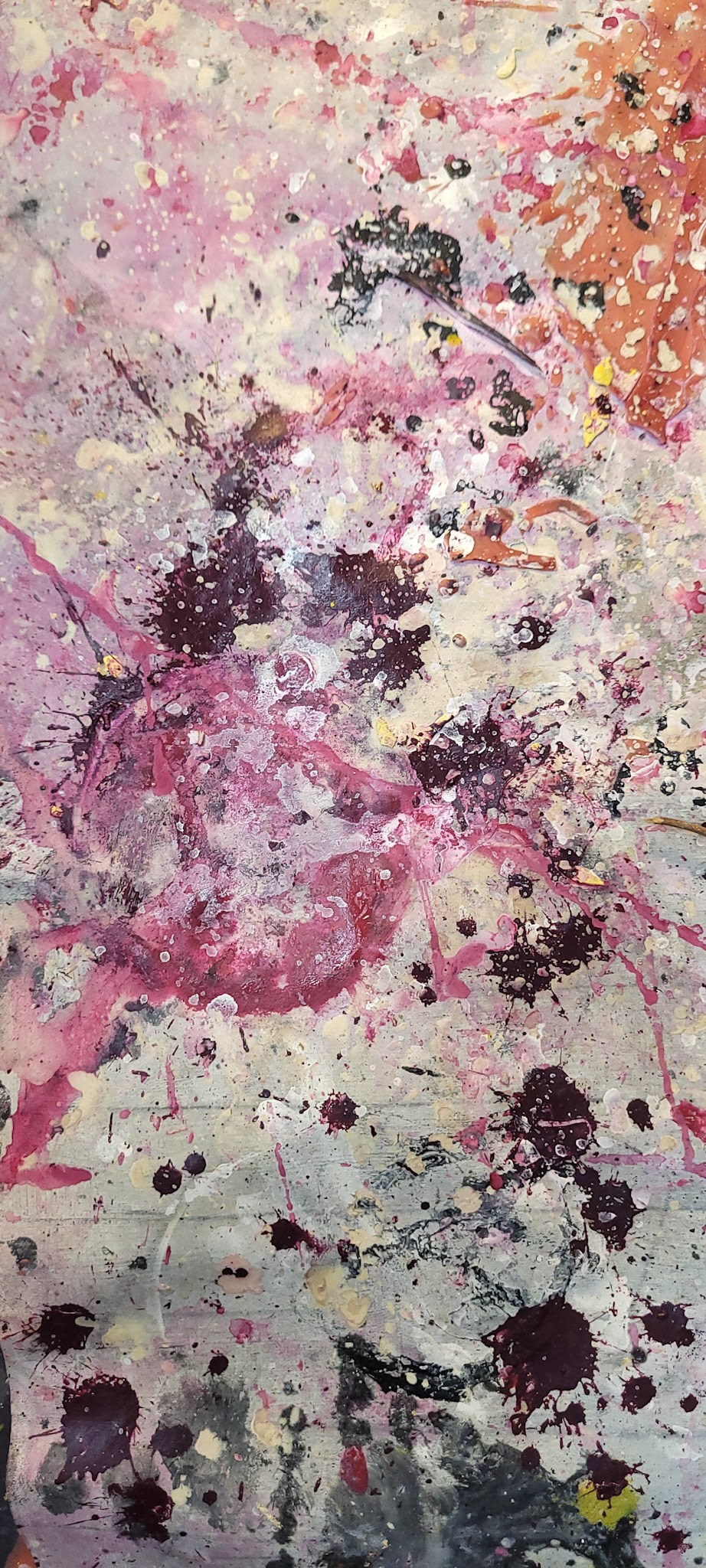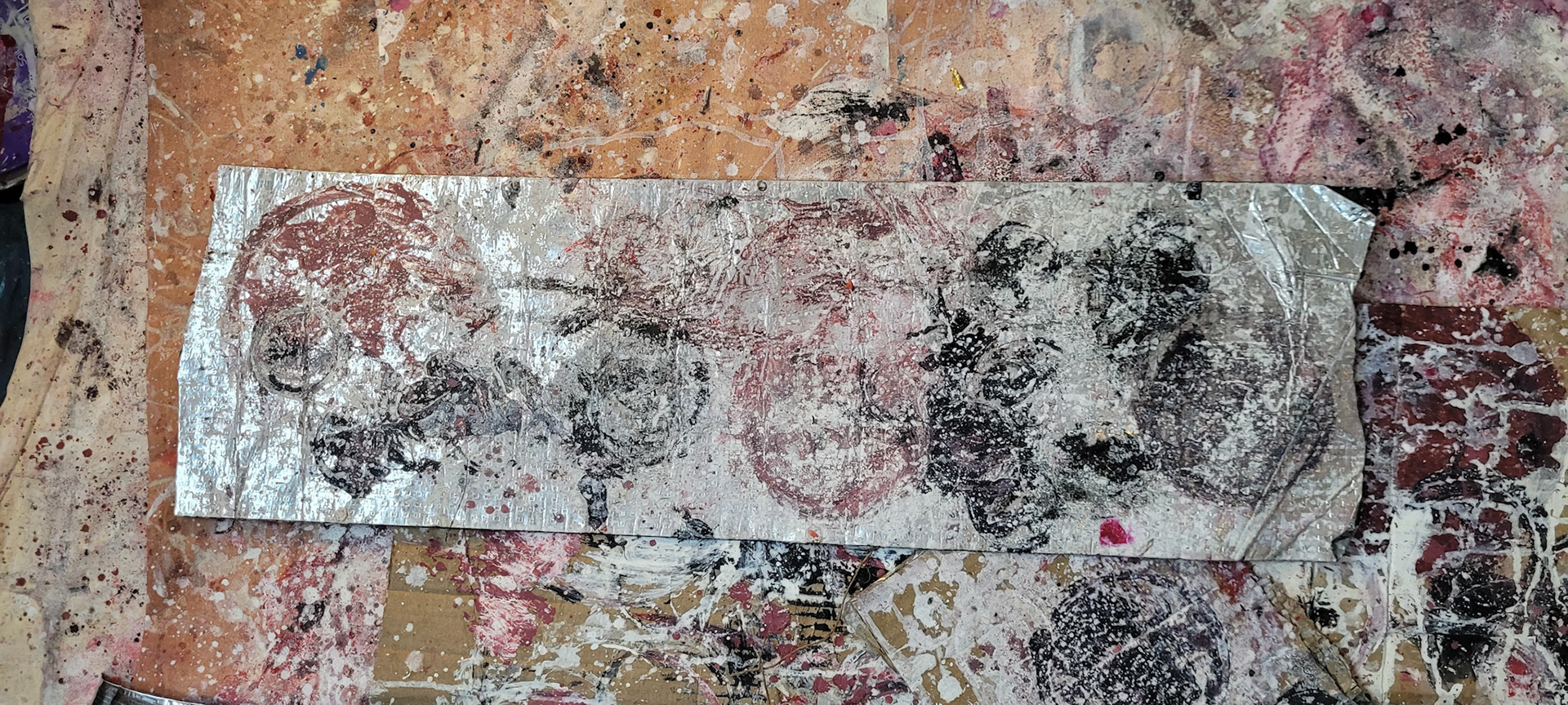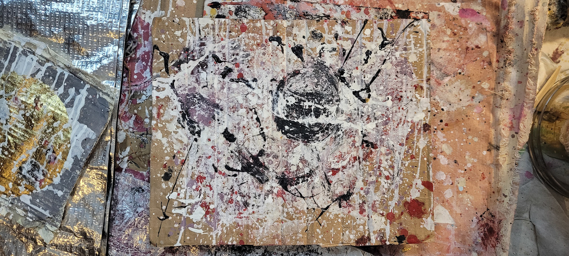 Aqui, onde o chão é mais que suporte — é ventre, húmus, carne da própria matéria pictórica — nascem gestos que não querem secar.