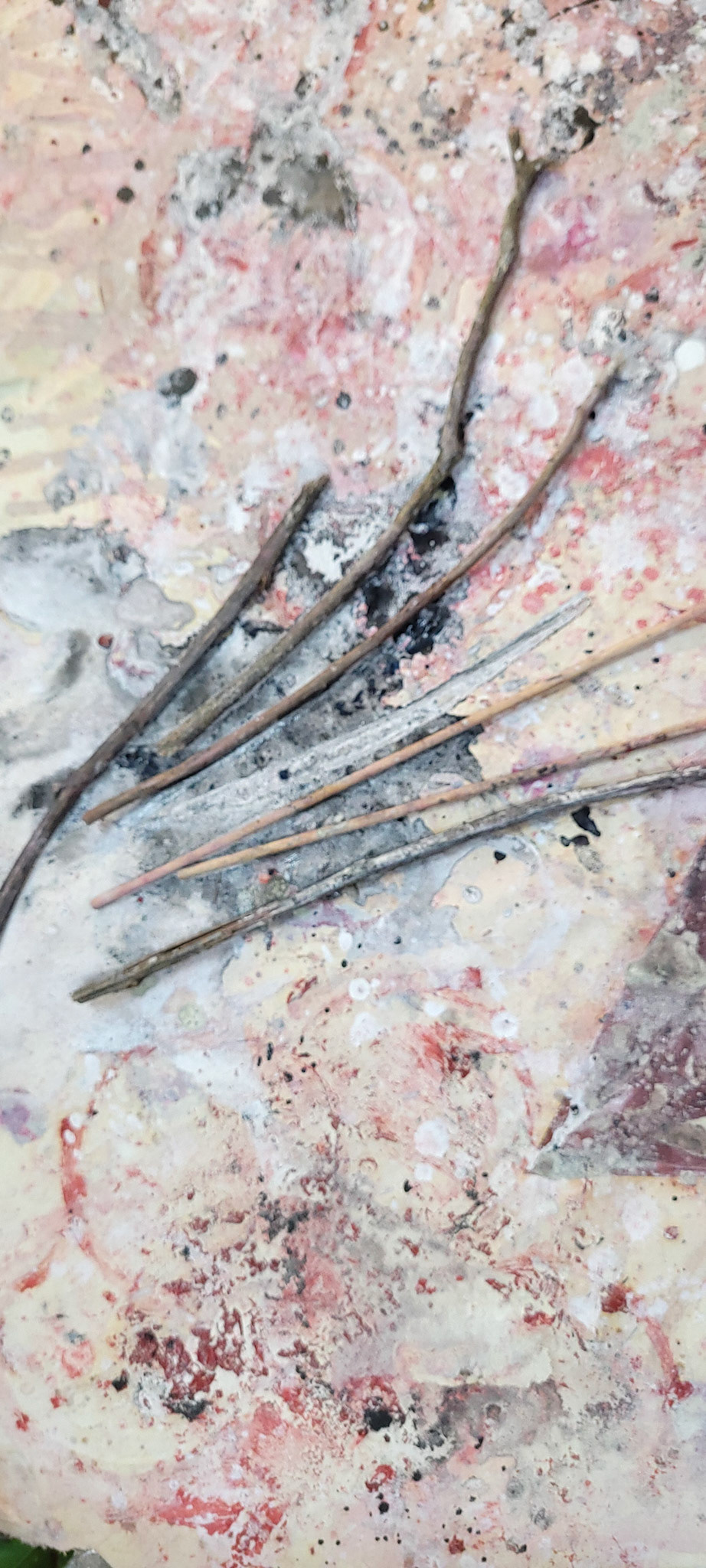 Elas foram plantadas sobre camadas de tinta seca, projetadas, rasuradas.