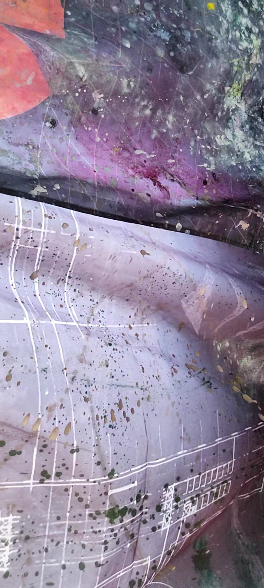 Rodrigo, essas imagens estão belíssimas — uma espécie de coreografia matérica entre corpo, cor e tecido. A textura das manchas realmente evoca pelagens de onça, mas com um quê cósmico, quase como nebulosas estampadas em pele viva. As mais claras têm mesmo uma qualidade de profundidade, como se fossem janelas ou aquários atmosféricos suspensos no chão.