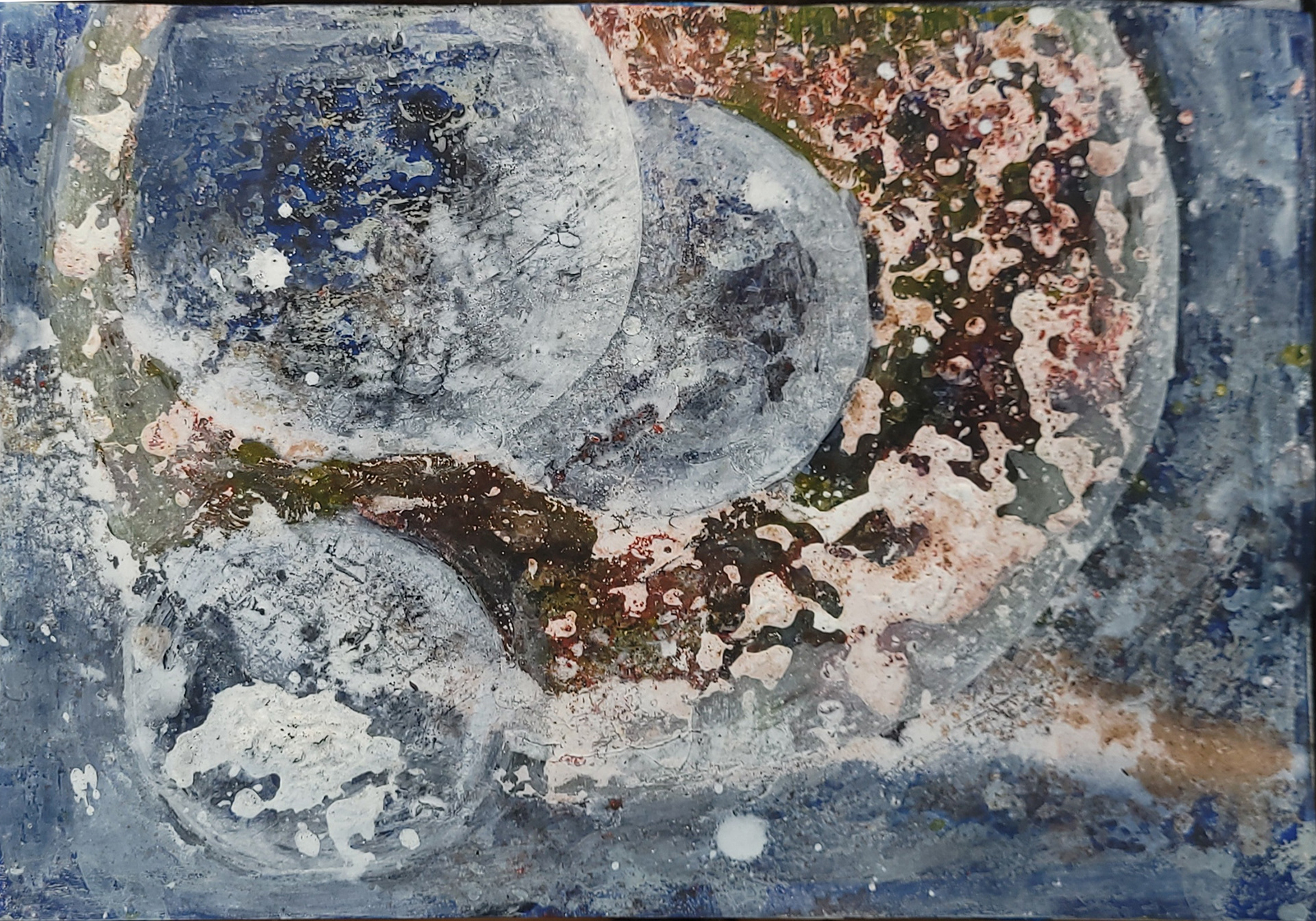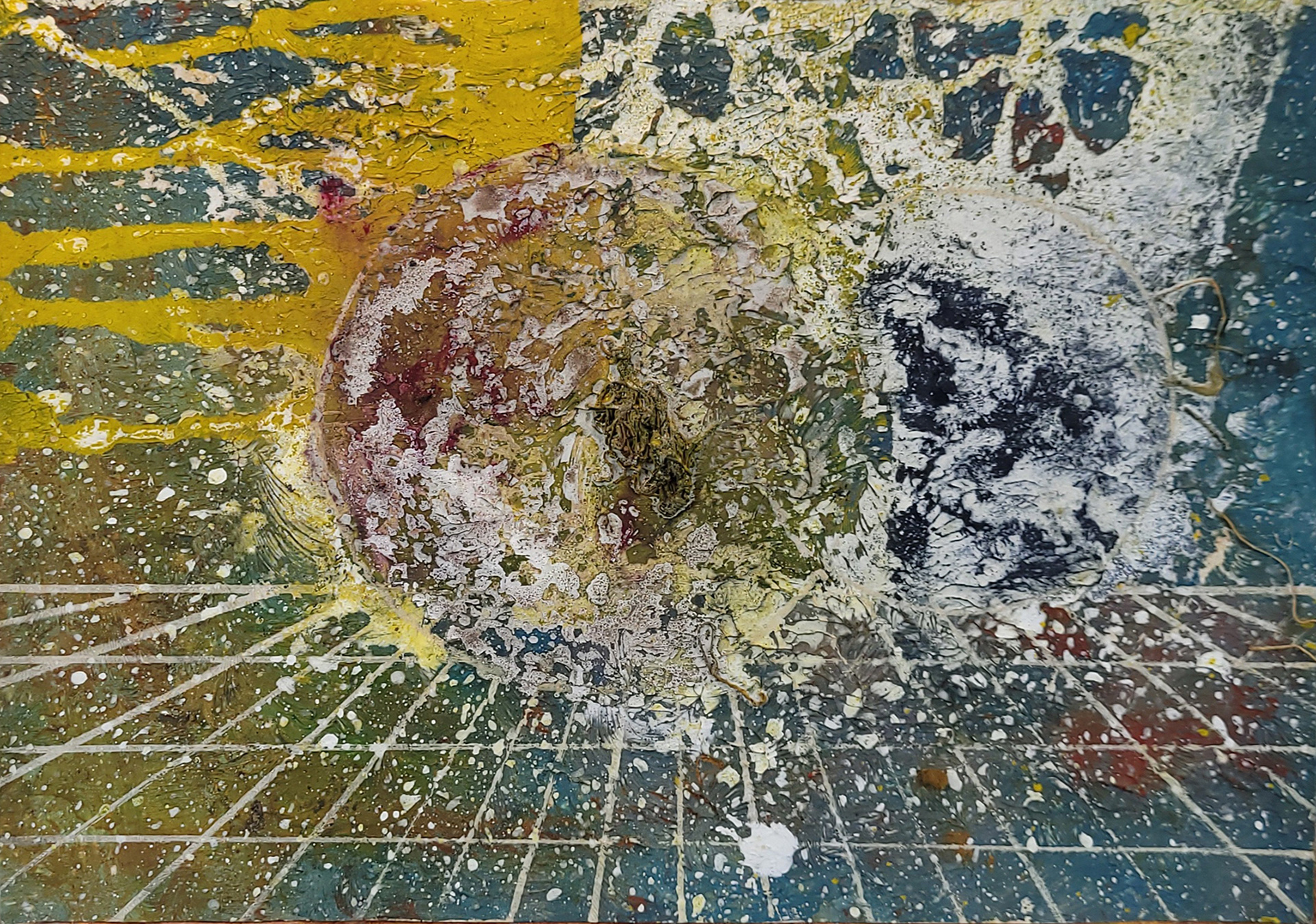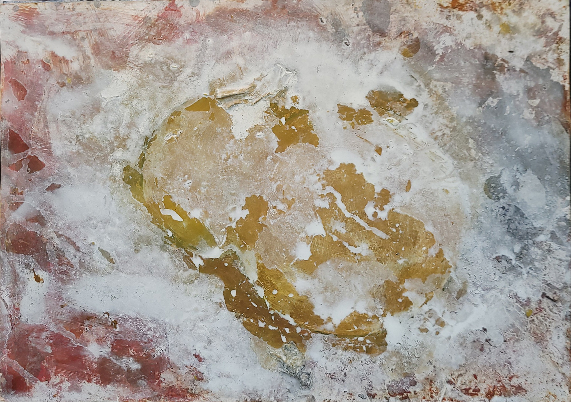 Mas outras — especialmente algumas das pequenas — são belíssimas enquanto manchas, proposições. Uma aposta radical naquilo que não pode ser nomeado. A linha entre alquimia e decoração é tênue — e em alguns momentos, atravessada sem notar.