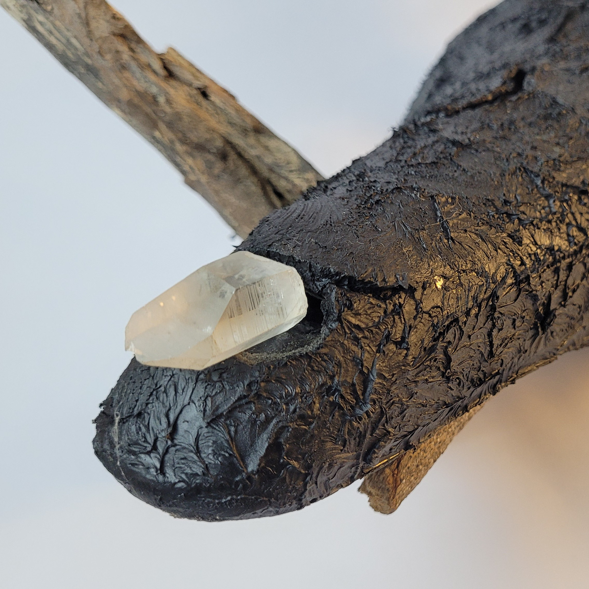 Here I think of Tunga, with his alchemy of gestures and objects turning into rituals of passage, and of Matthew Barney, with his metamorphic bodies extending through prostheses, fluids, and excessive hybrids. The saddle with its crystal vibrates at the same frequency: an eroticism beyond the human, where body, object, and mineral collapse into one.